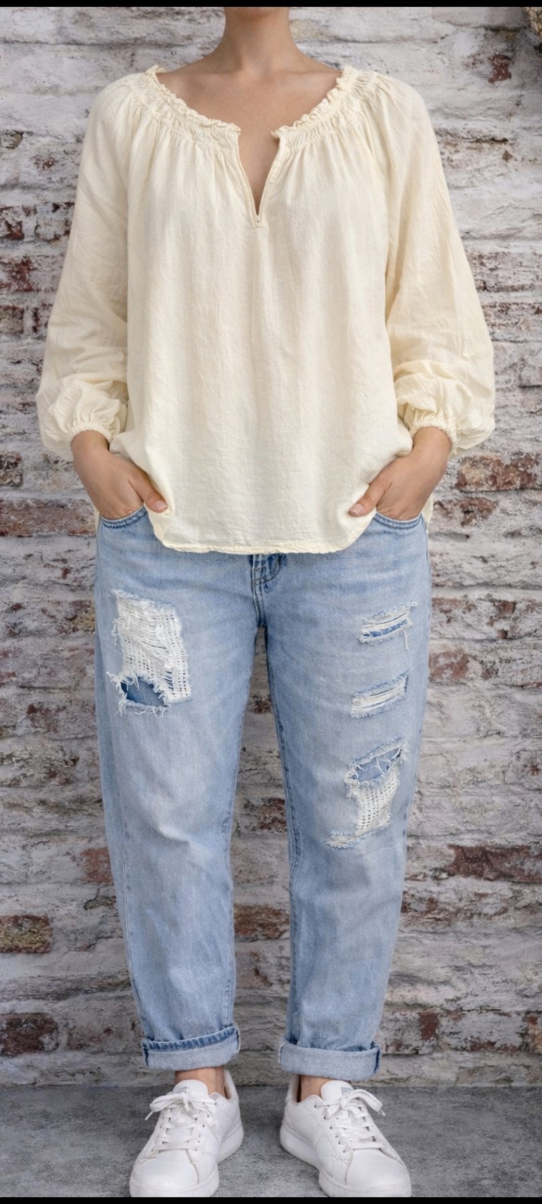 ❤️ Blouse Bohème & Paysanne en Coton Crème