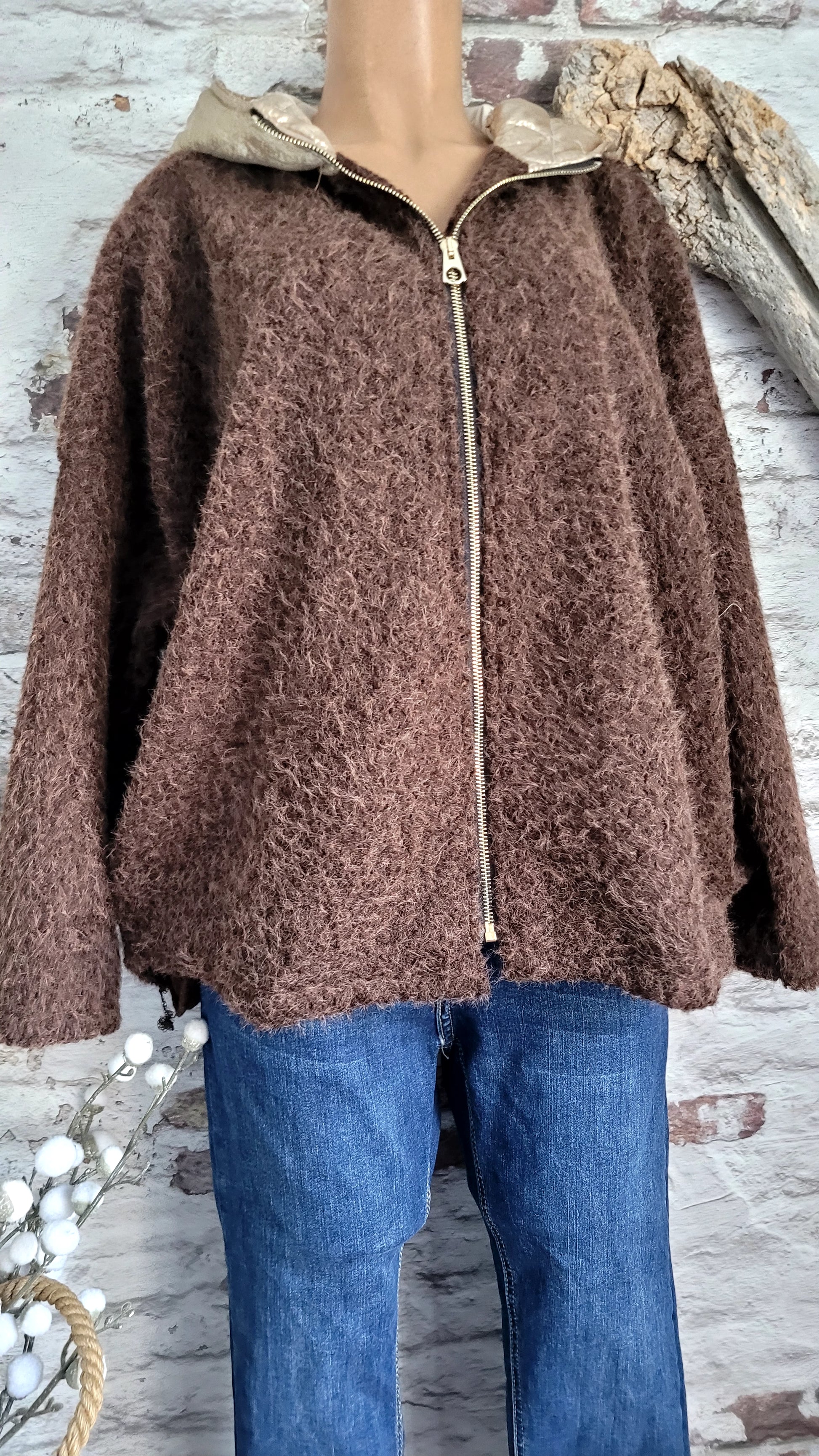 Tendance et confortable, cette veste combine un tissu noir bouclé avec une capuche dorée matelassée. Sa coupe courte et ample est idéale pour la mi-saison. Pratique, elle dispose de deux poches latérales et d'une fermeture zippée dorée. Le mix parfait entre chic et décontracté !