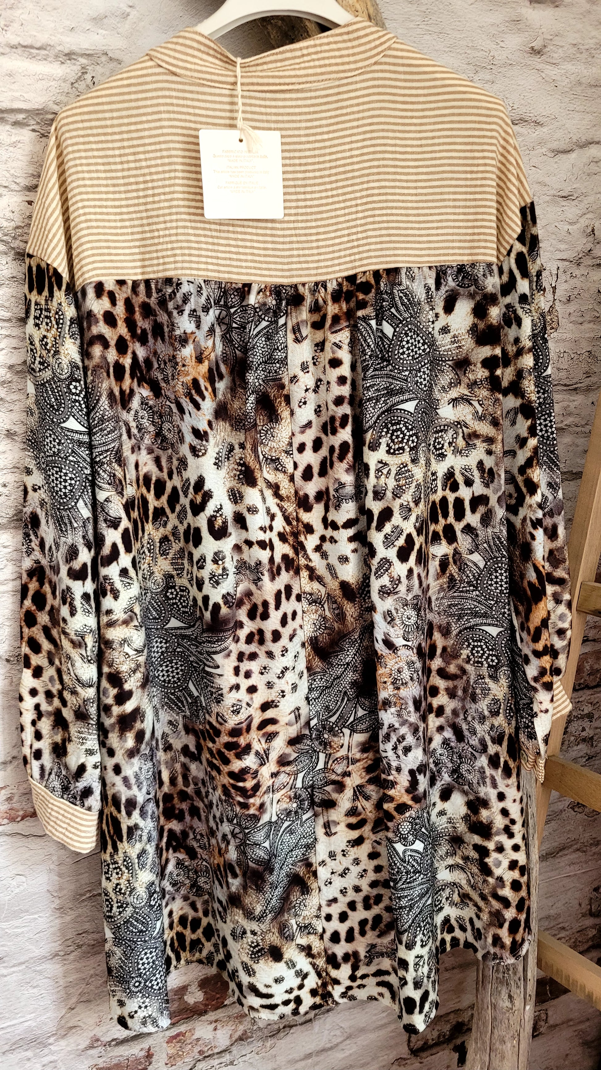 Sa coupe fluide et son col en V contrastant créent une silhouette élégante et décontractée. Pratique et stylée, cette tunique est dotée de deux poches latérales, idéales pour un usage quotidien.