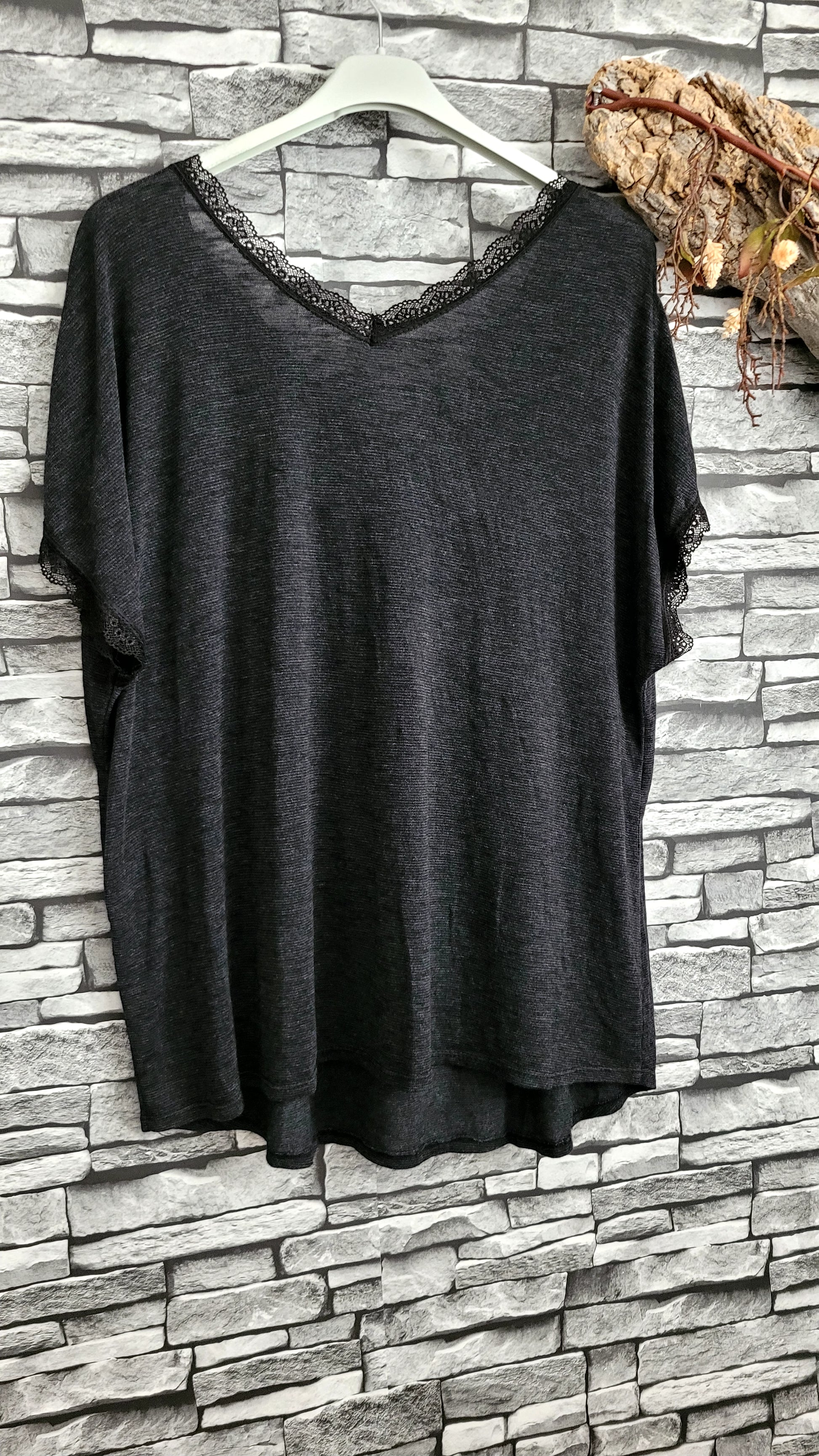 ❤️Top Fluide Chiné – Détails Dentelle & Nœud