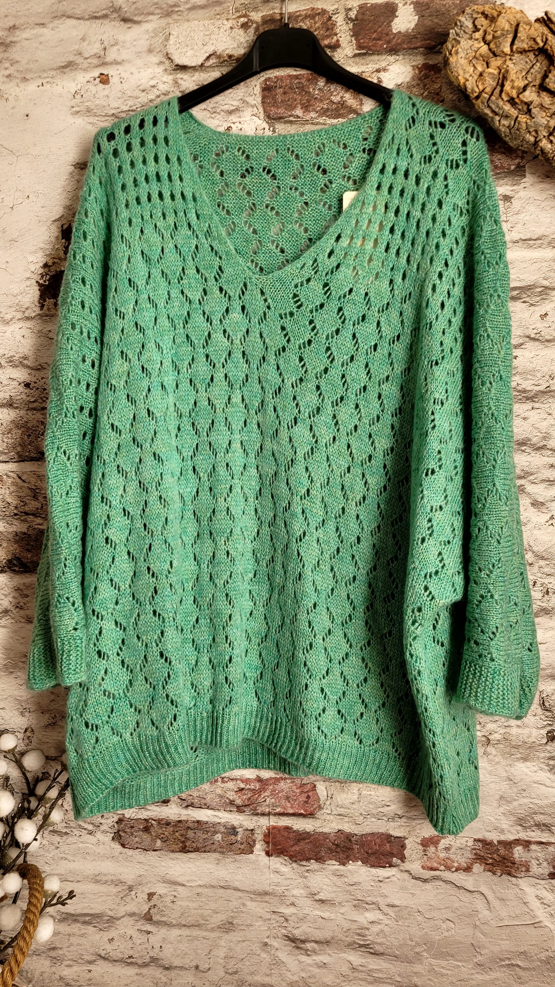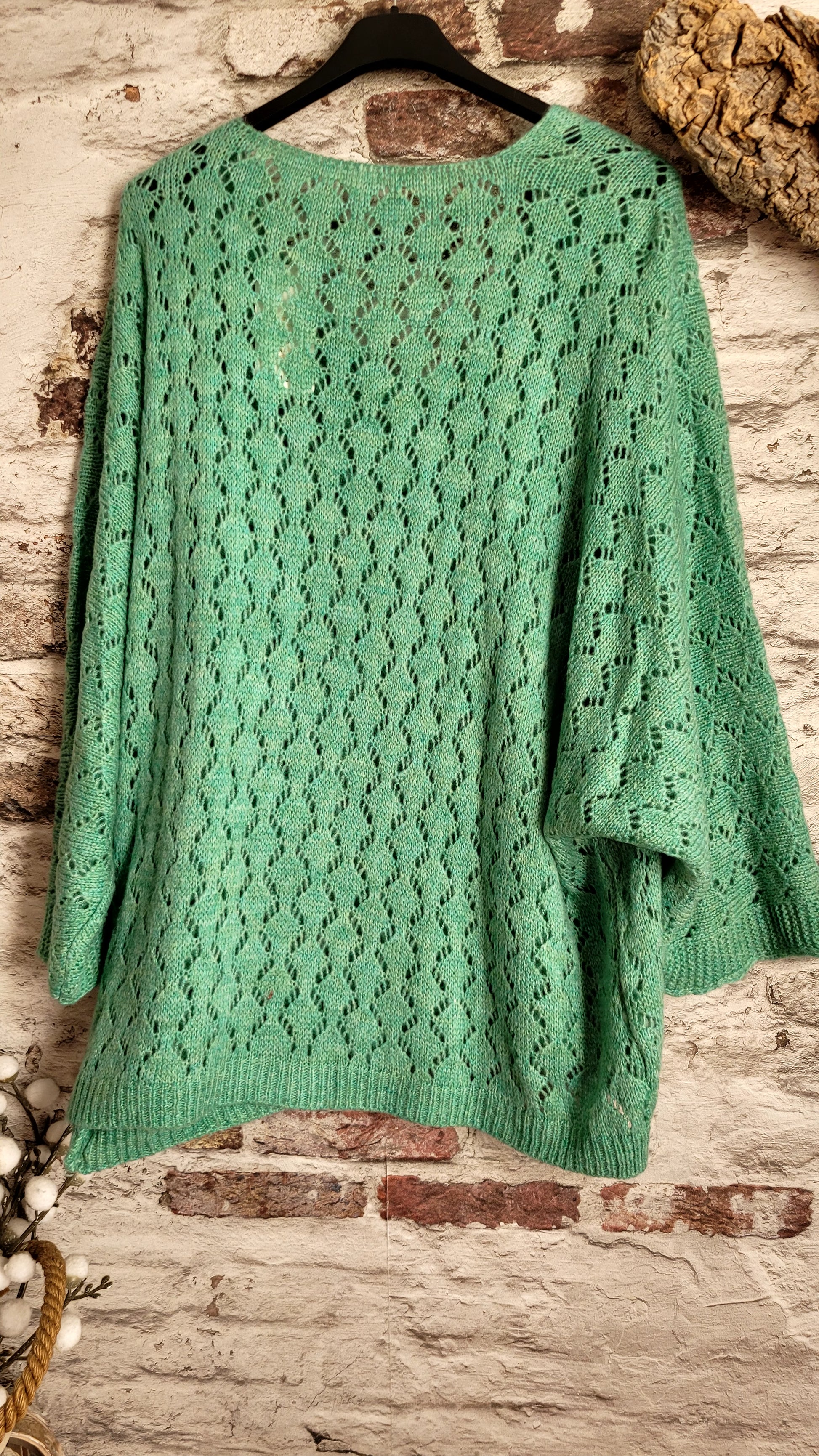 🍒 Pull vert turquoise oversize en maille ajourée : le confort avec style !