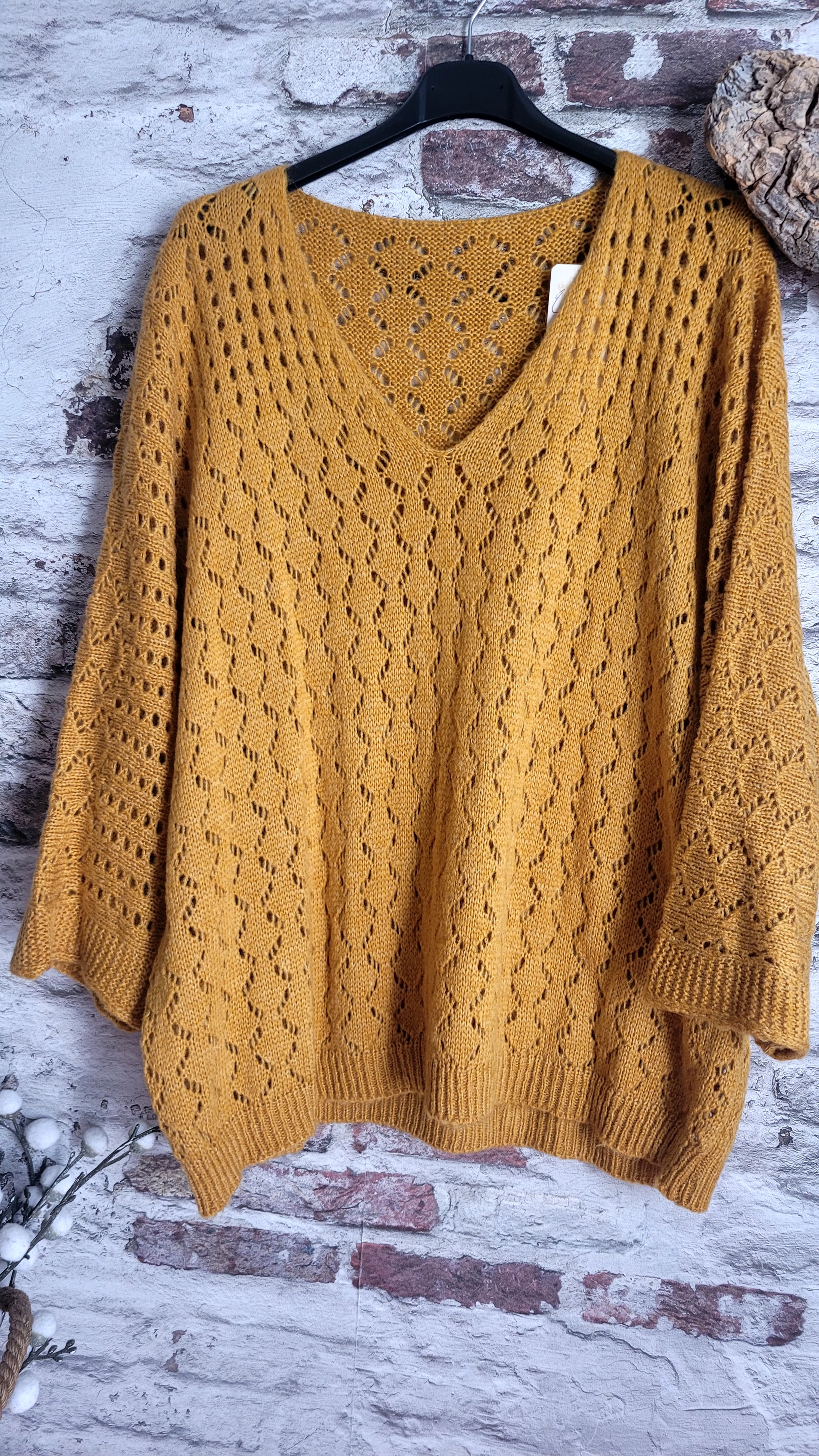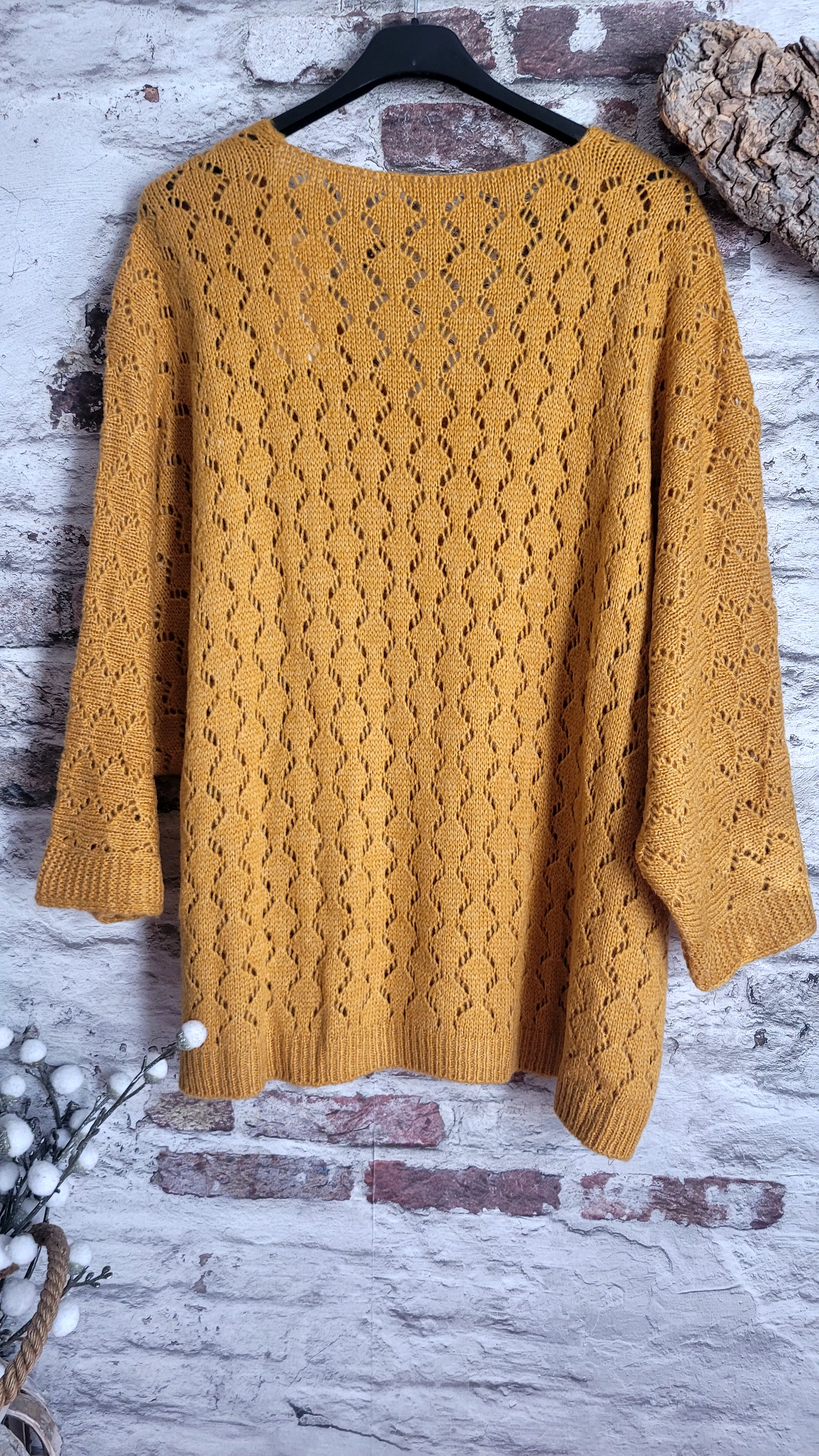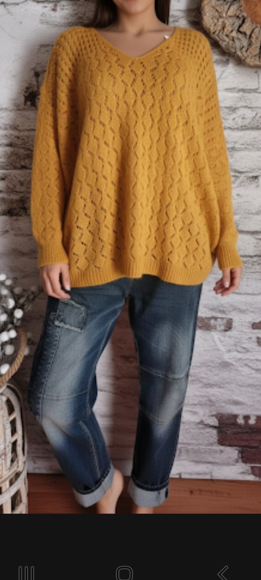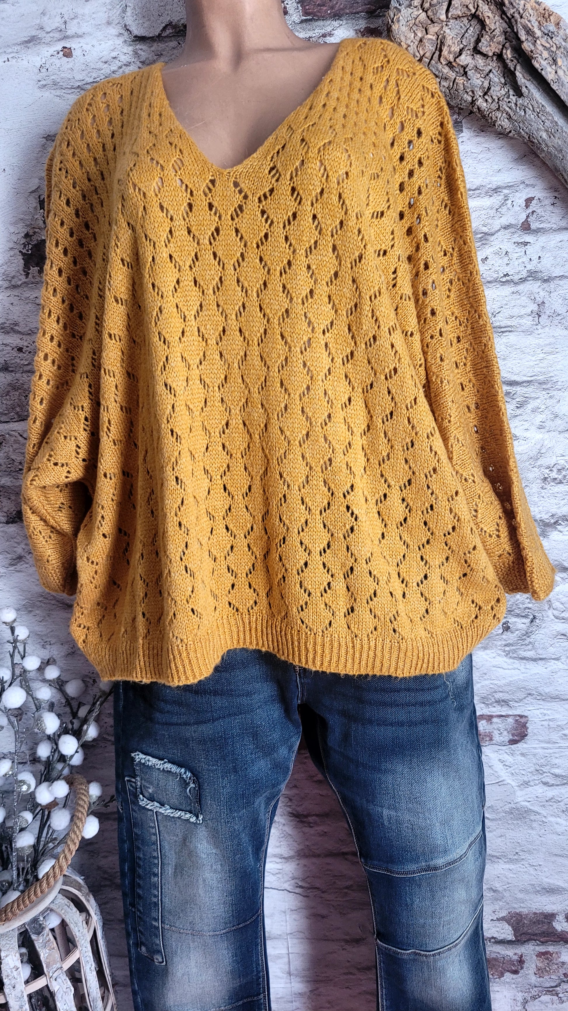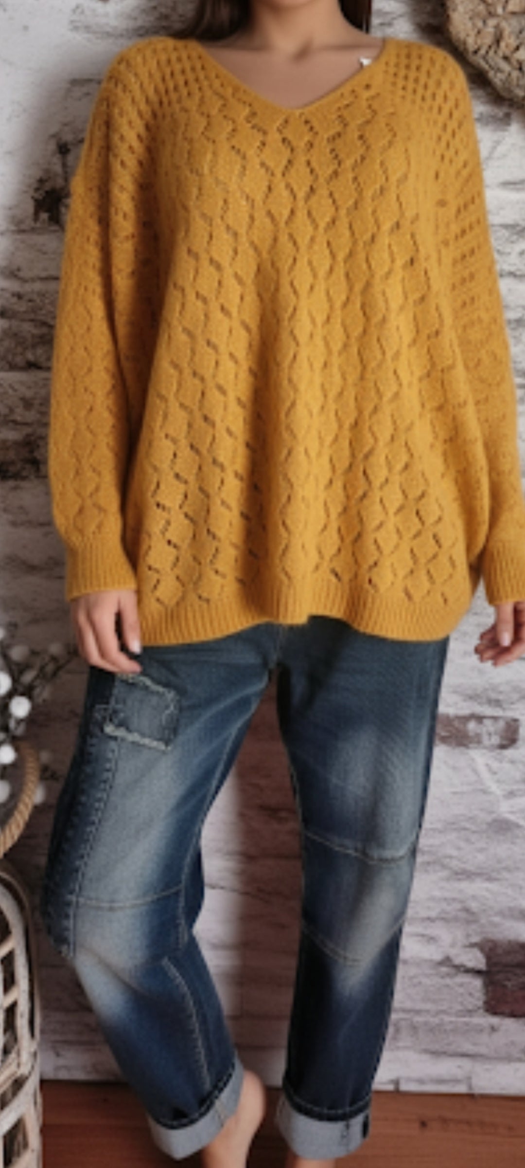🍒 Pull moutarde oversize en maille ajourée : le confort avec style !