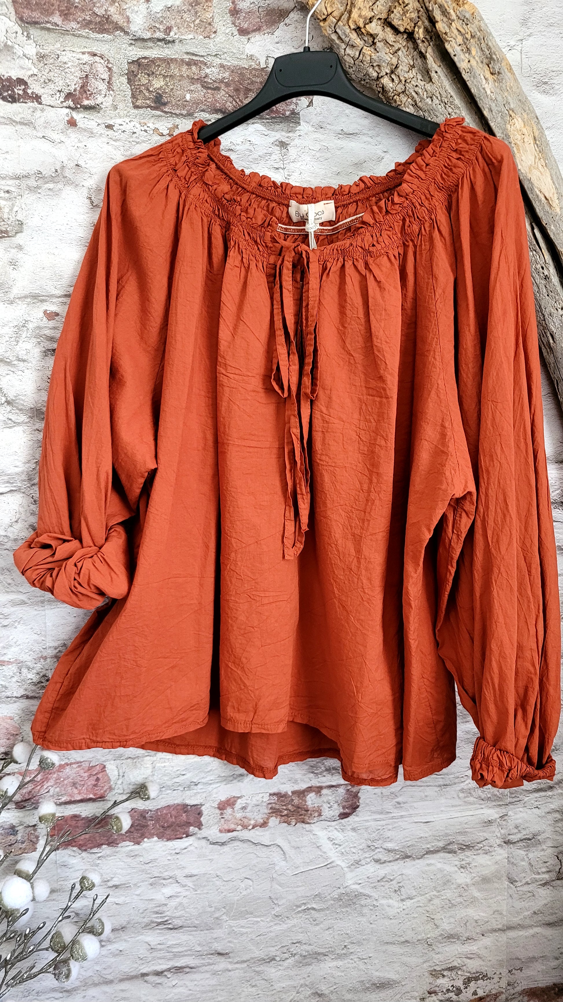 ❤️ Blouse Bohème & Paysanne en Coton couleur terre cuite