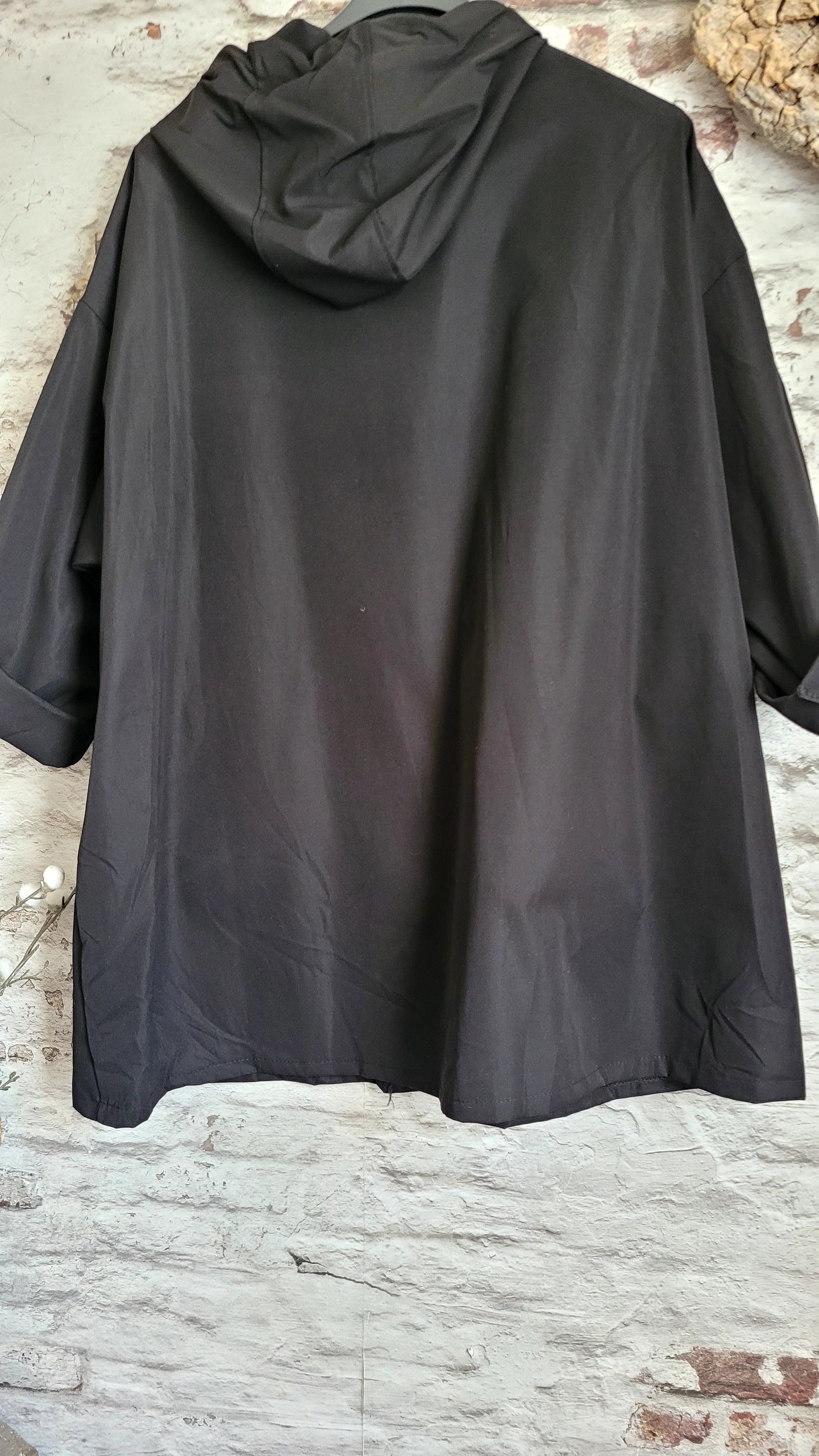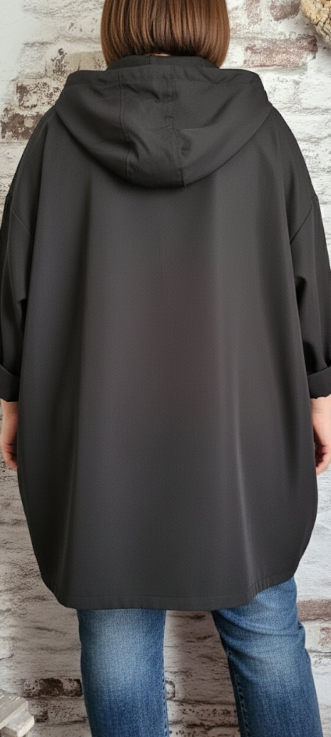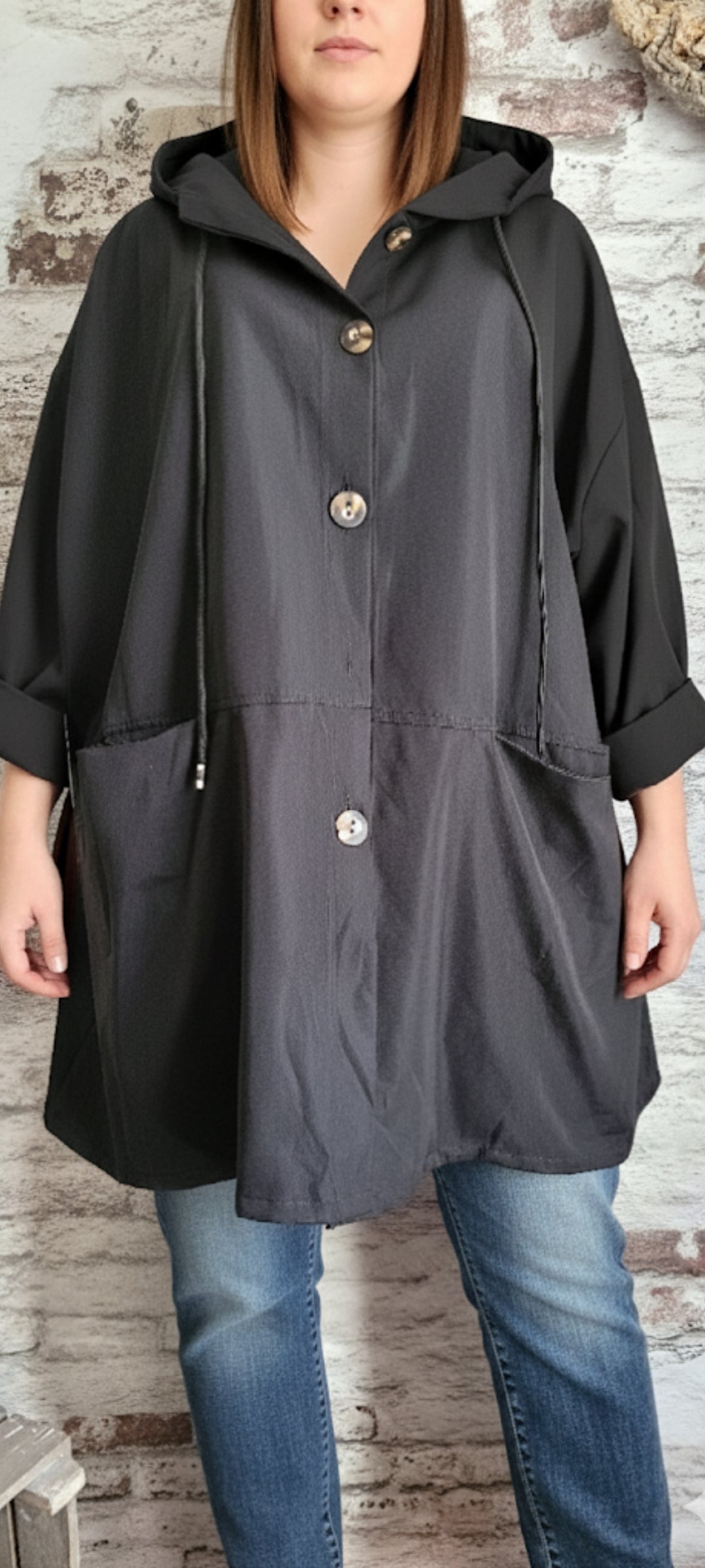 Cette veste coupe-vent à la coupe ample et décontractée est un incontournable pour la mi-saison. Son design polyvalent, avec une capuche et des cordons de serrage, offre à la fois style et protection.