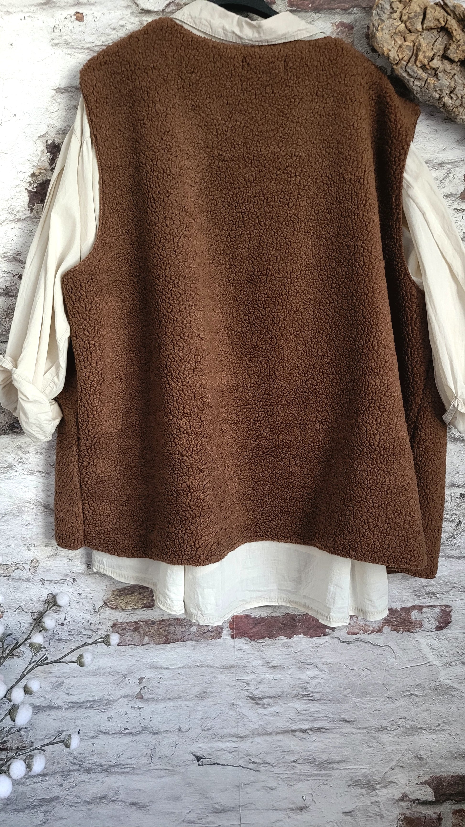 ❤️ Gilet sans manches texturé (façon moumoute) bleu marine. Pièce tendance avec col en V, fermeture à boutons et deux grandes poches plaquées. Idéal pour superposer et apporter une touche de douceur et de style décontracté chic. Made in Italy.