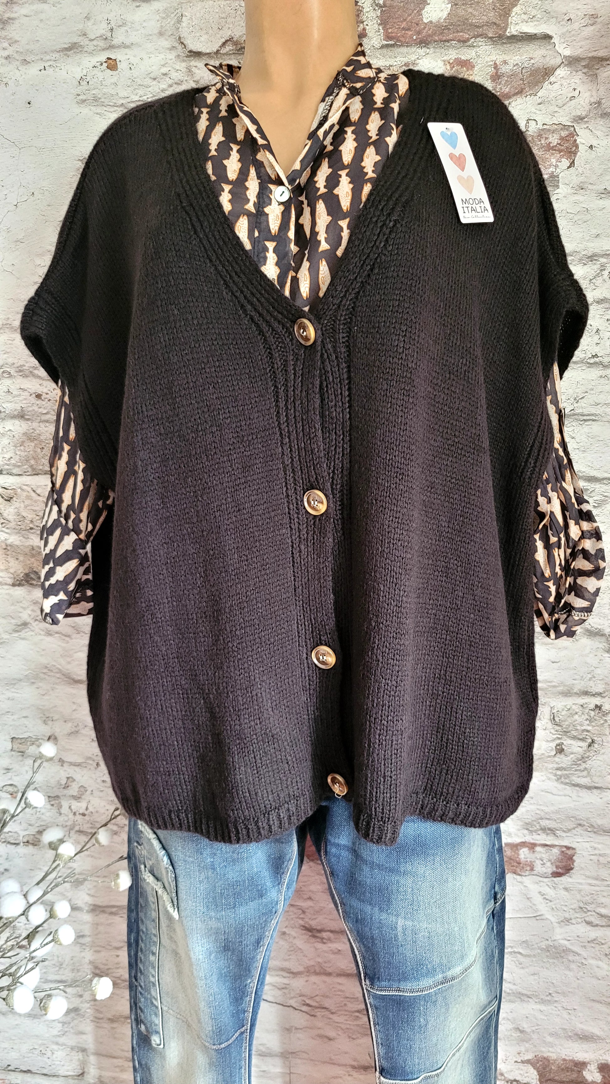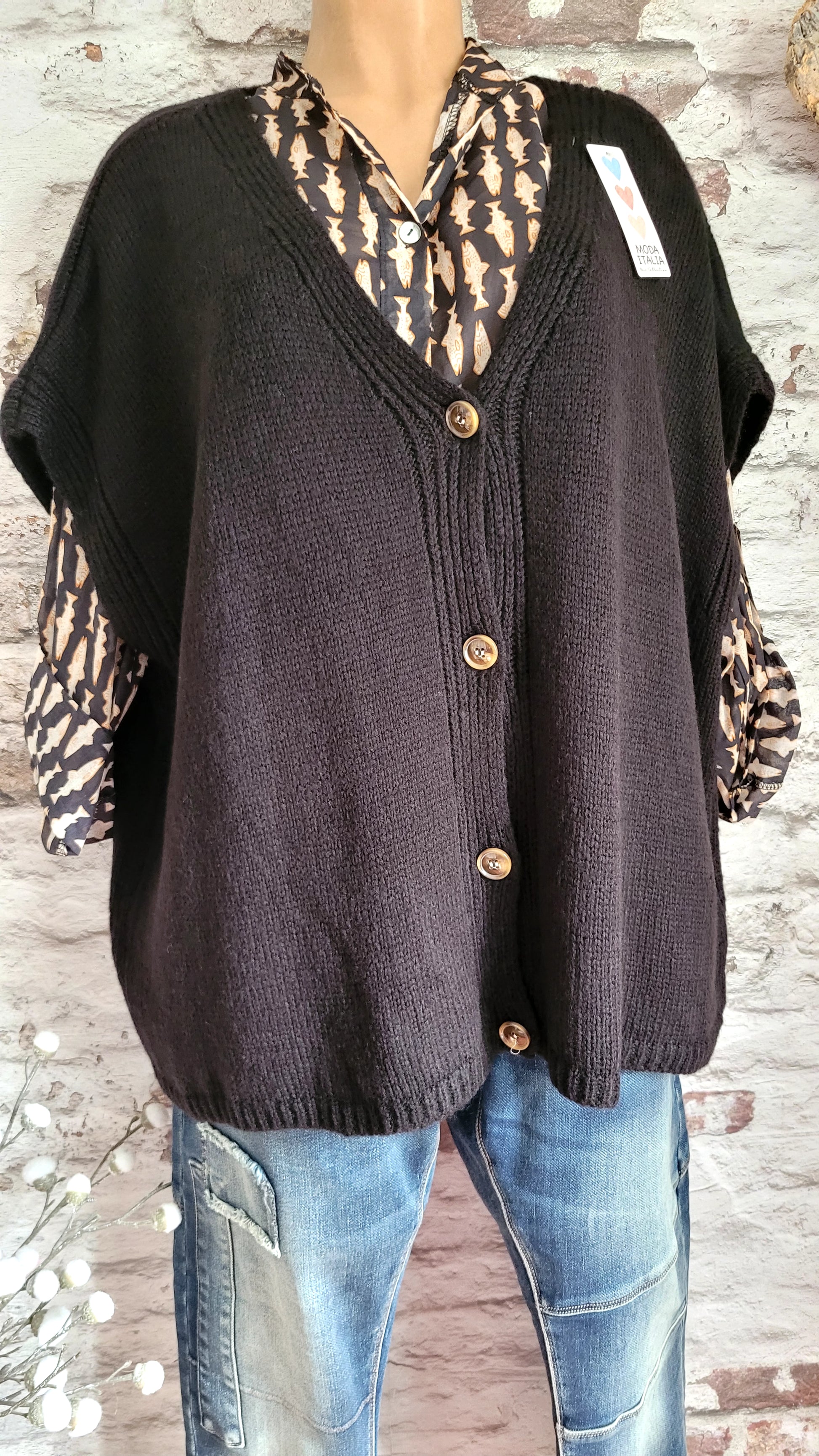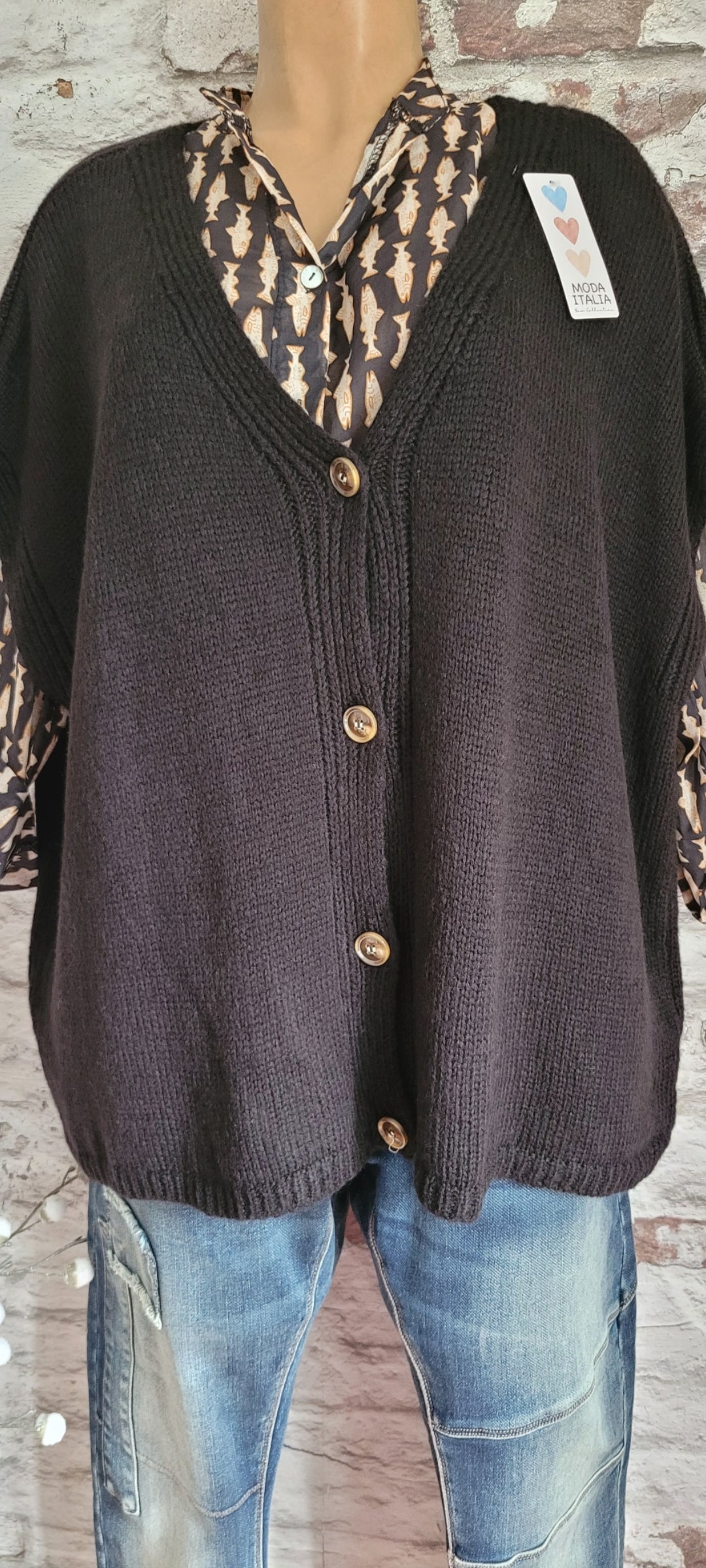 Détails : Boutons sur le devant, finition côtelée à la base.