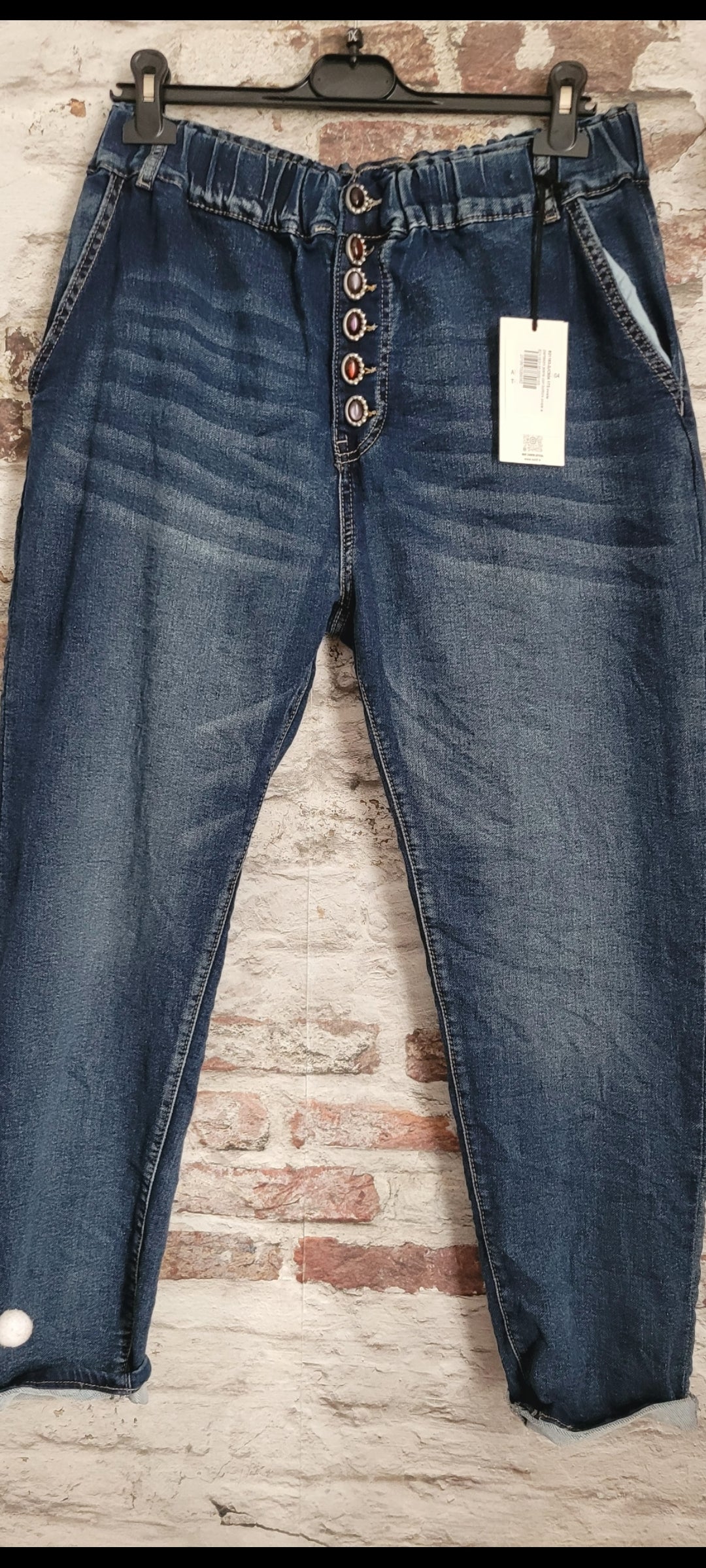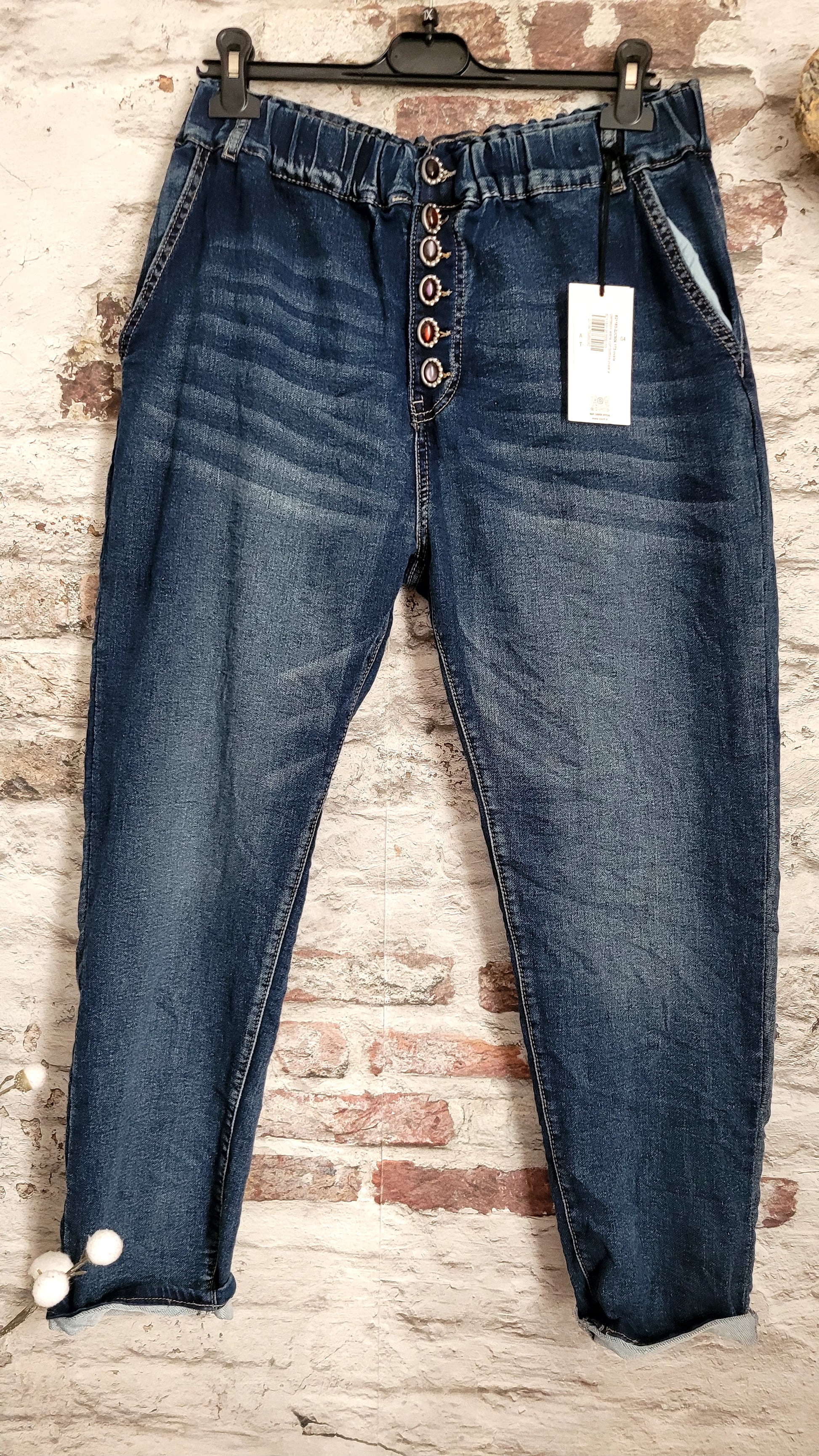 💕 👖 Jean stretch à taille élastique et boutons décoratifs