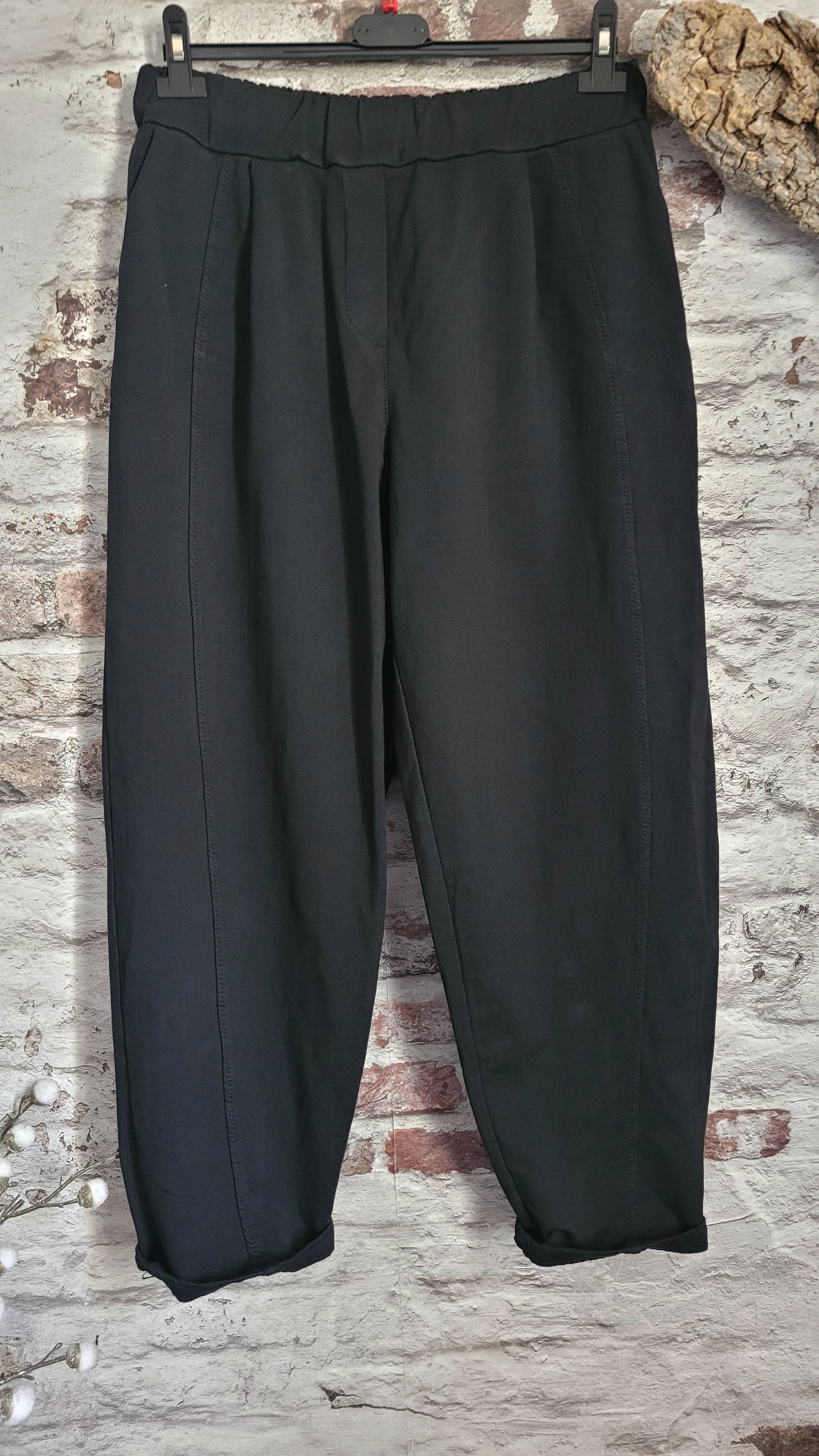 🌸Pantalon jogg confort couleur noir Coupe ample "balloon" taille élastiquée et bas de jambe retroussé. Doté de poches pratiques sur les côtés et de poches plaquées au dos. Idéal pour un style décontracté et moderne.