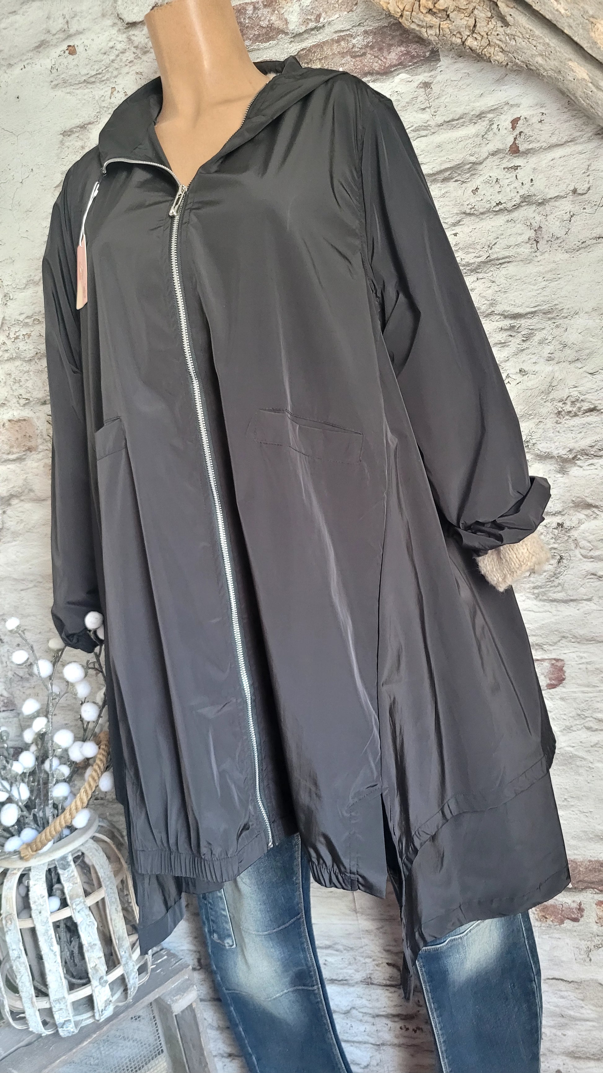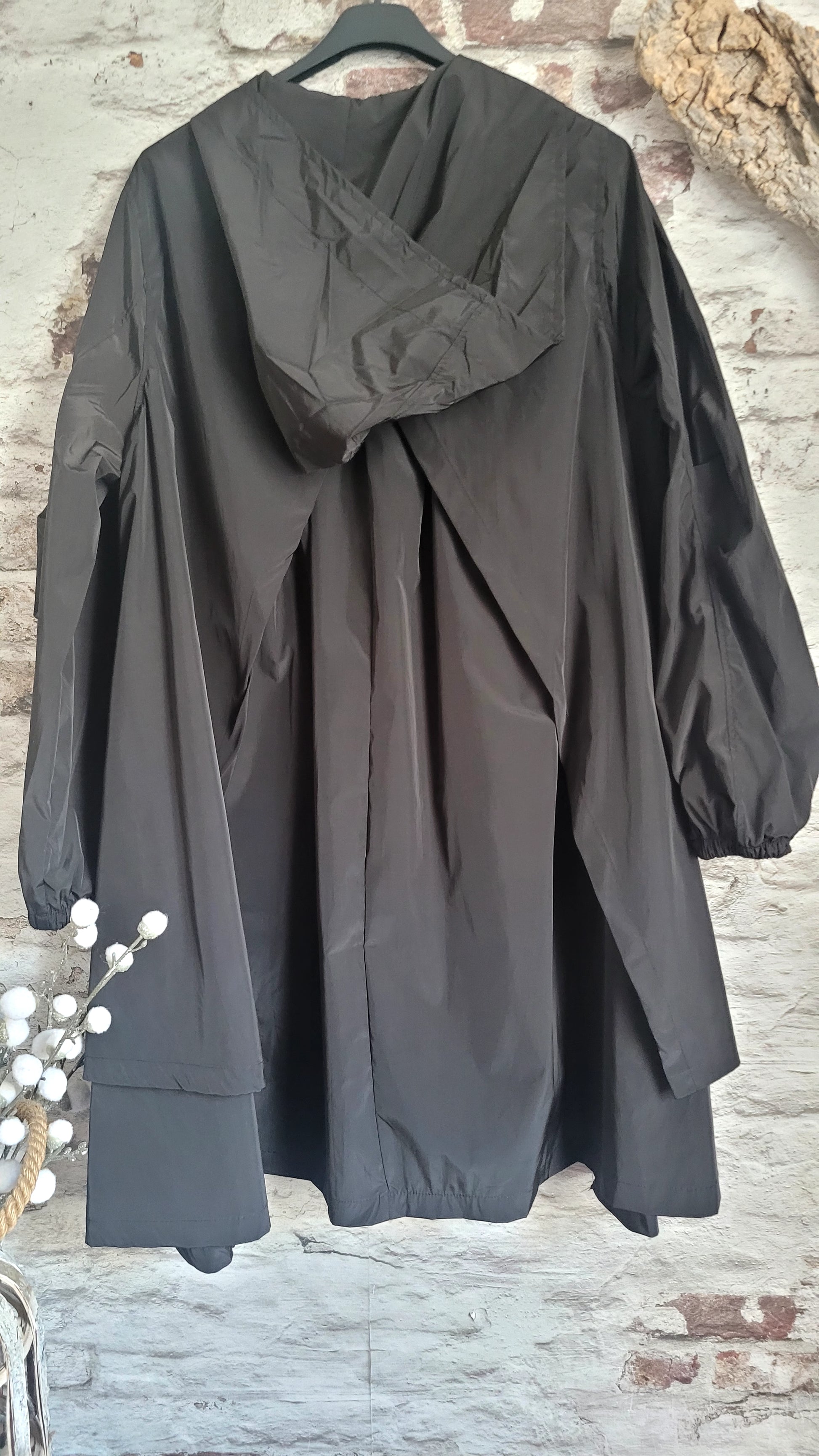 Ce parka de pluie long et léger est la pièce parfaite pour un look tendance et confortable. Sa coupe ample et moderne est soulignée par un ourlet asymétrique, légèrement plus long à l'arrière, pour une allure unique. Doté d'une capuche pratique et de deux grandes poches, il allie parfaitement style et fonctionnalité. Un indispensable pour rester chic, même les jours de mauvais temps.