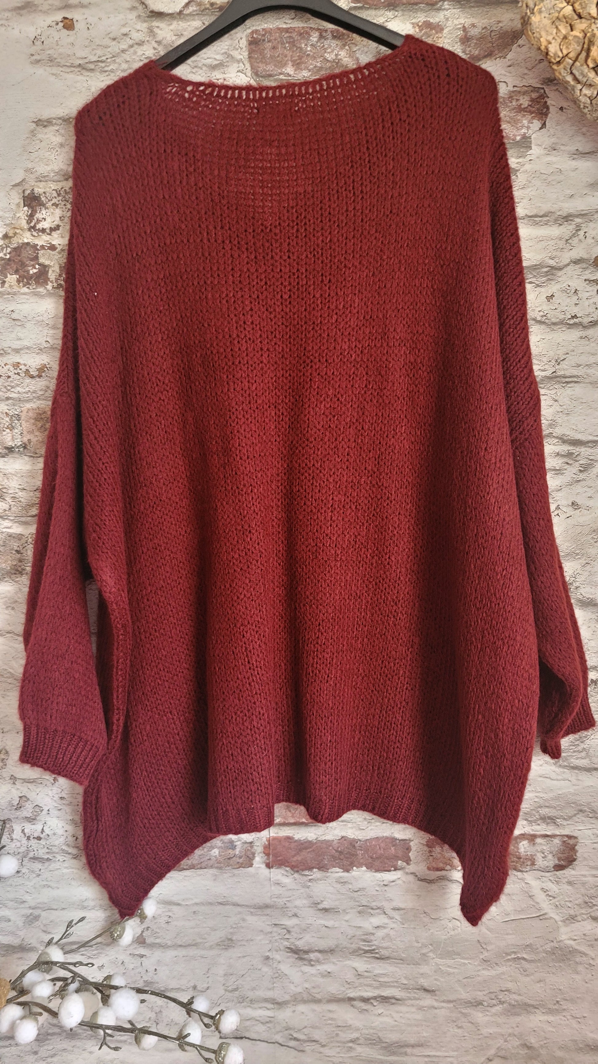 Coupe Oversize Maille Ajourée bordeaux Pailleté