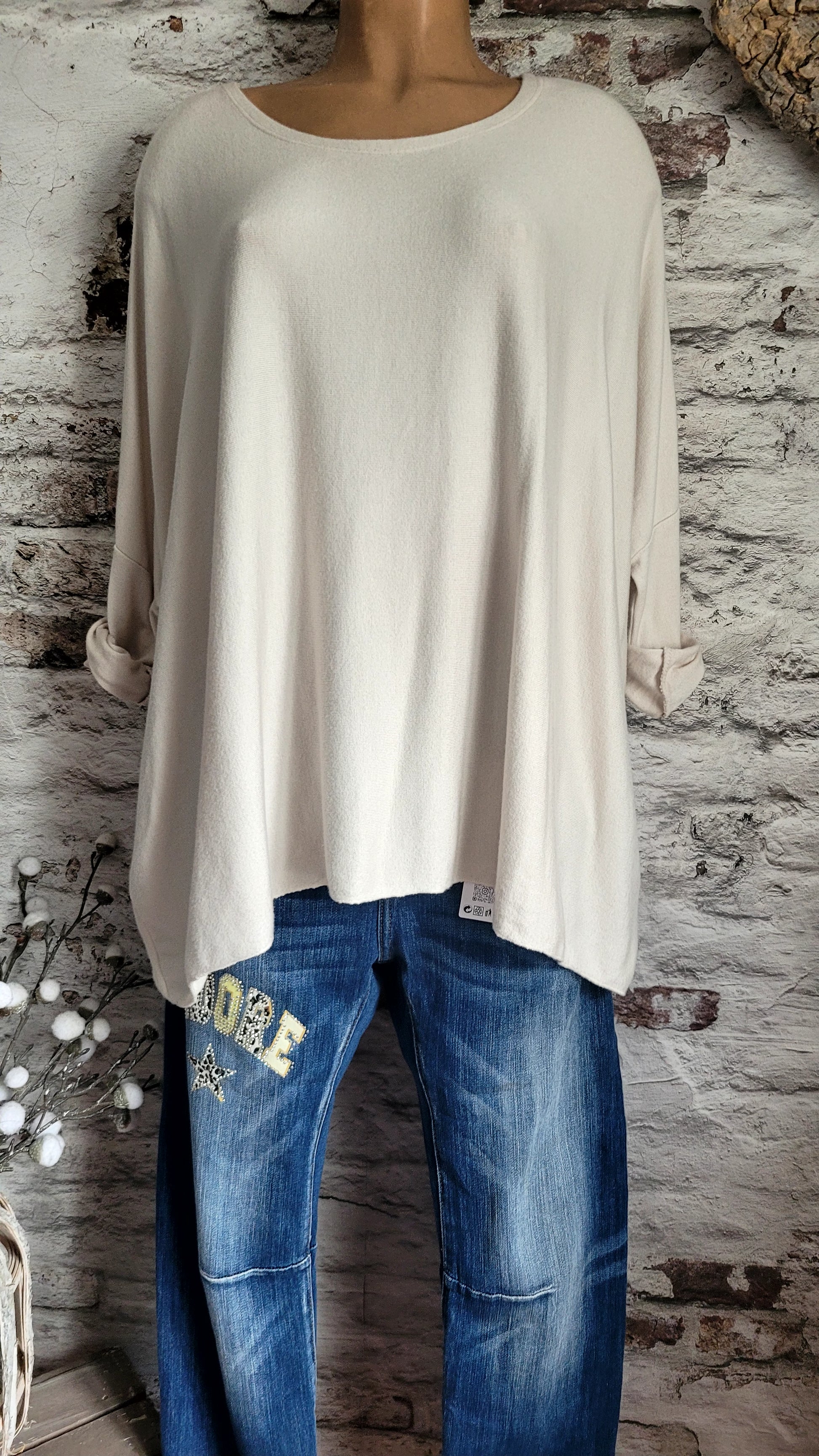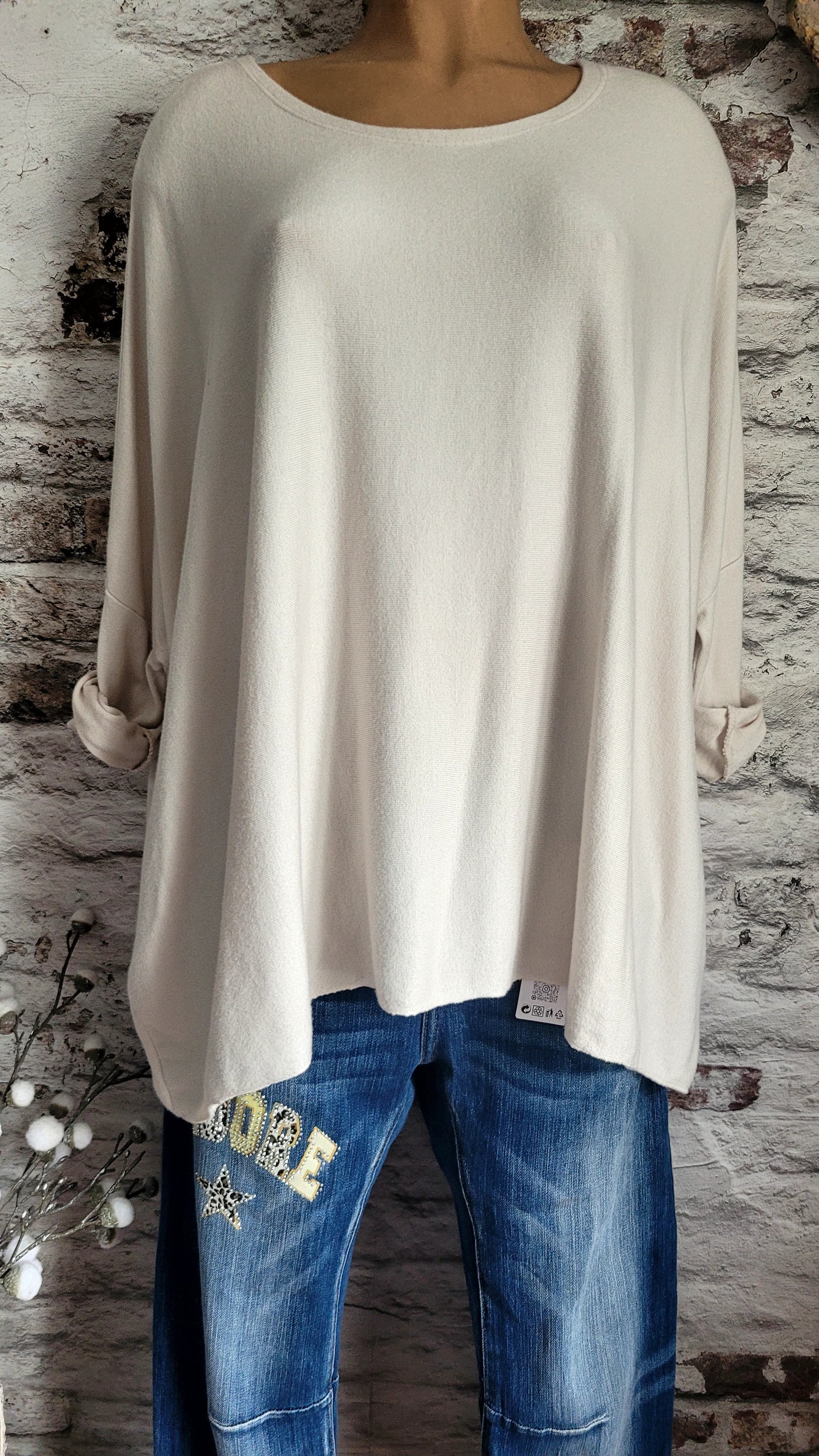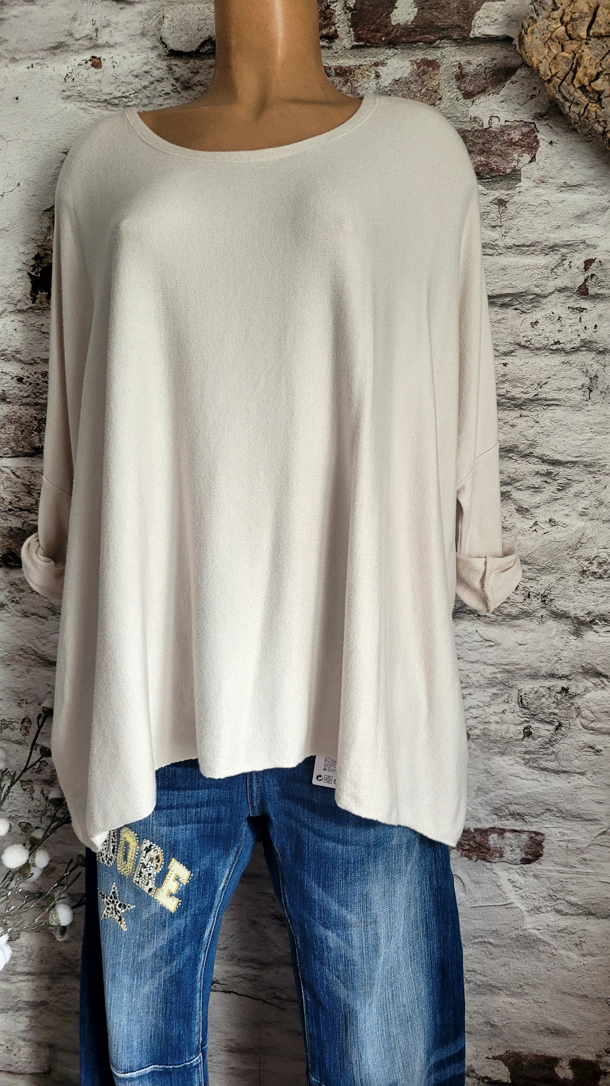 Craquez pour ce pull en maille légère couleur crème . Sa coupe loose et son tombé fluide offrent un confort maximal et une silhouette décontractée. Col rond classique et manches longues amples. Idéal pour un look tendance et confortable. Taille unique.