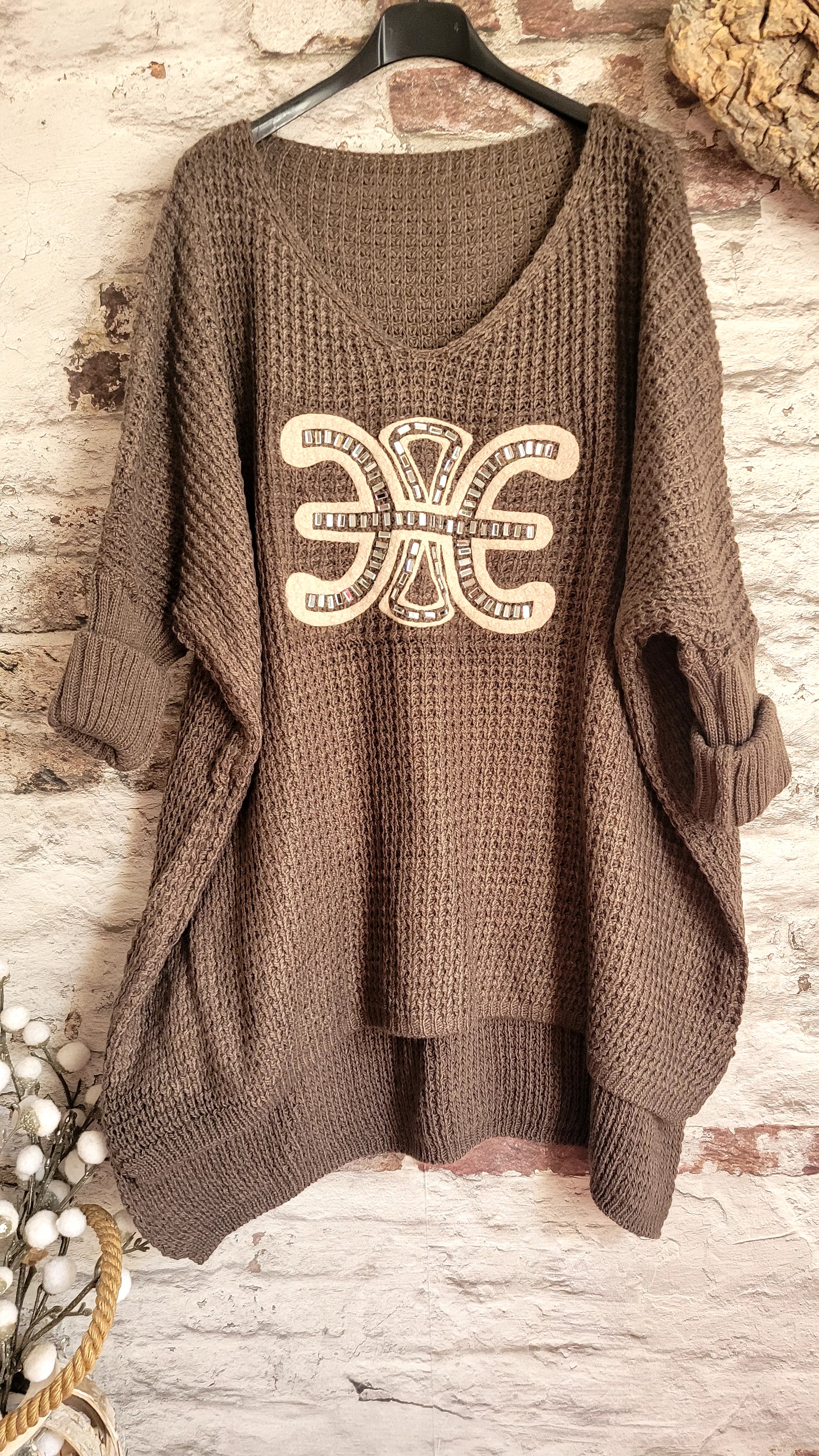 Motif central brodé, sublimé de détails brillants en strass pour une touche chic
