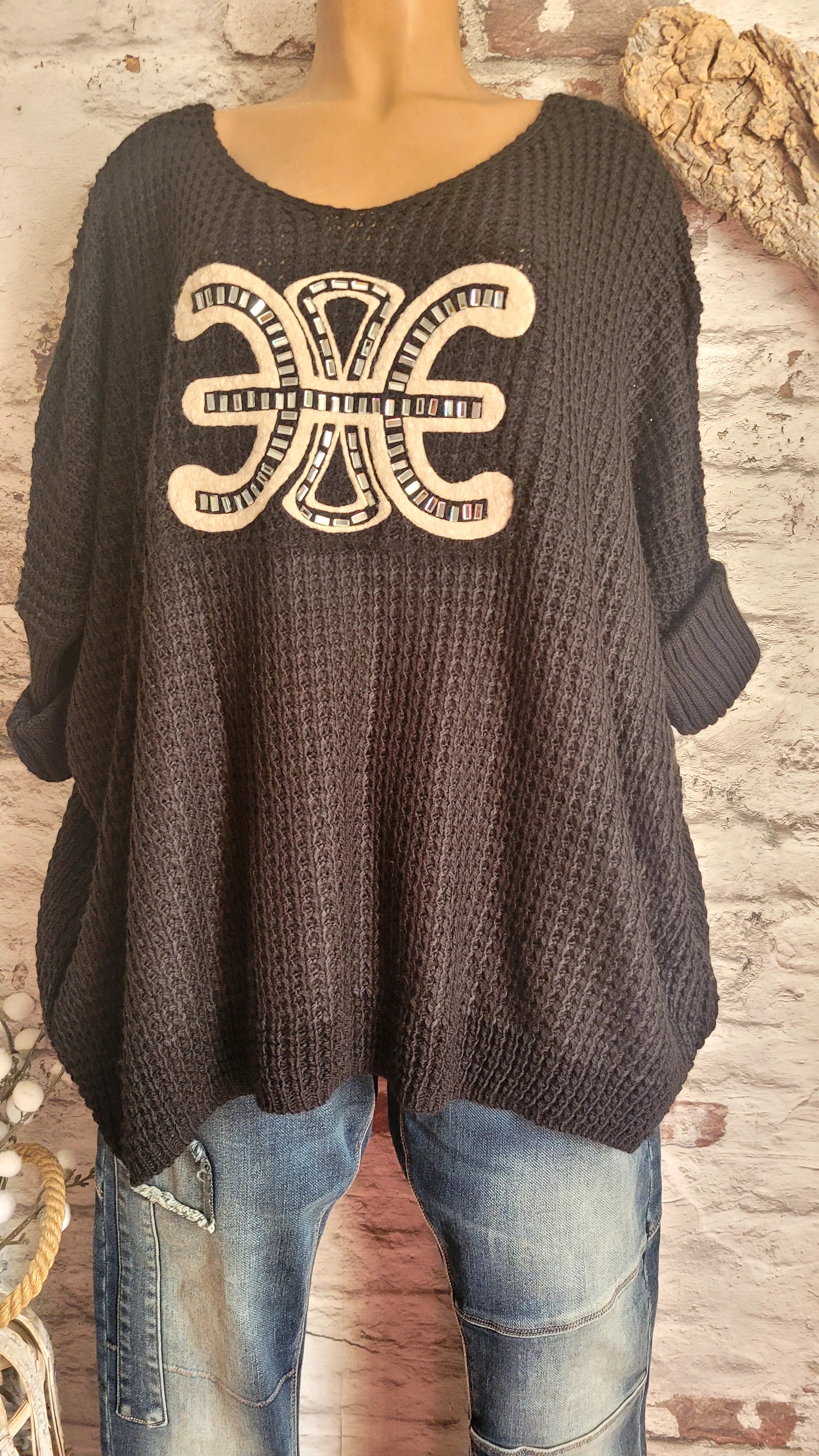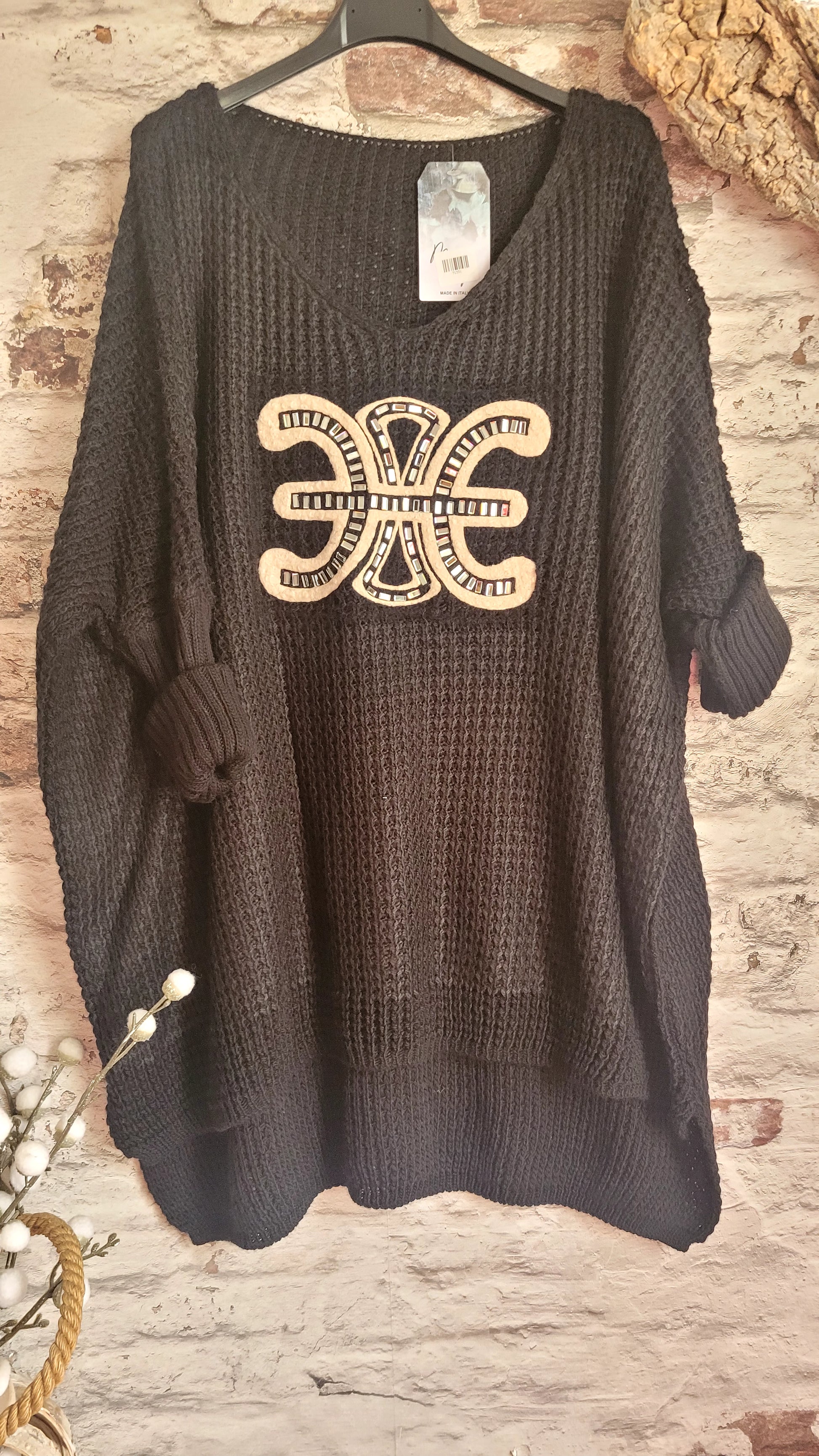 Motif central brodé, sublimé de détails brillants en strass pour une touche chic