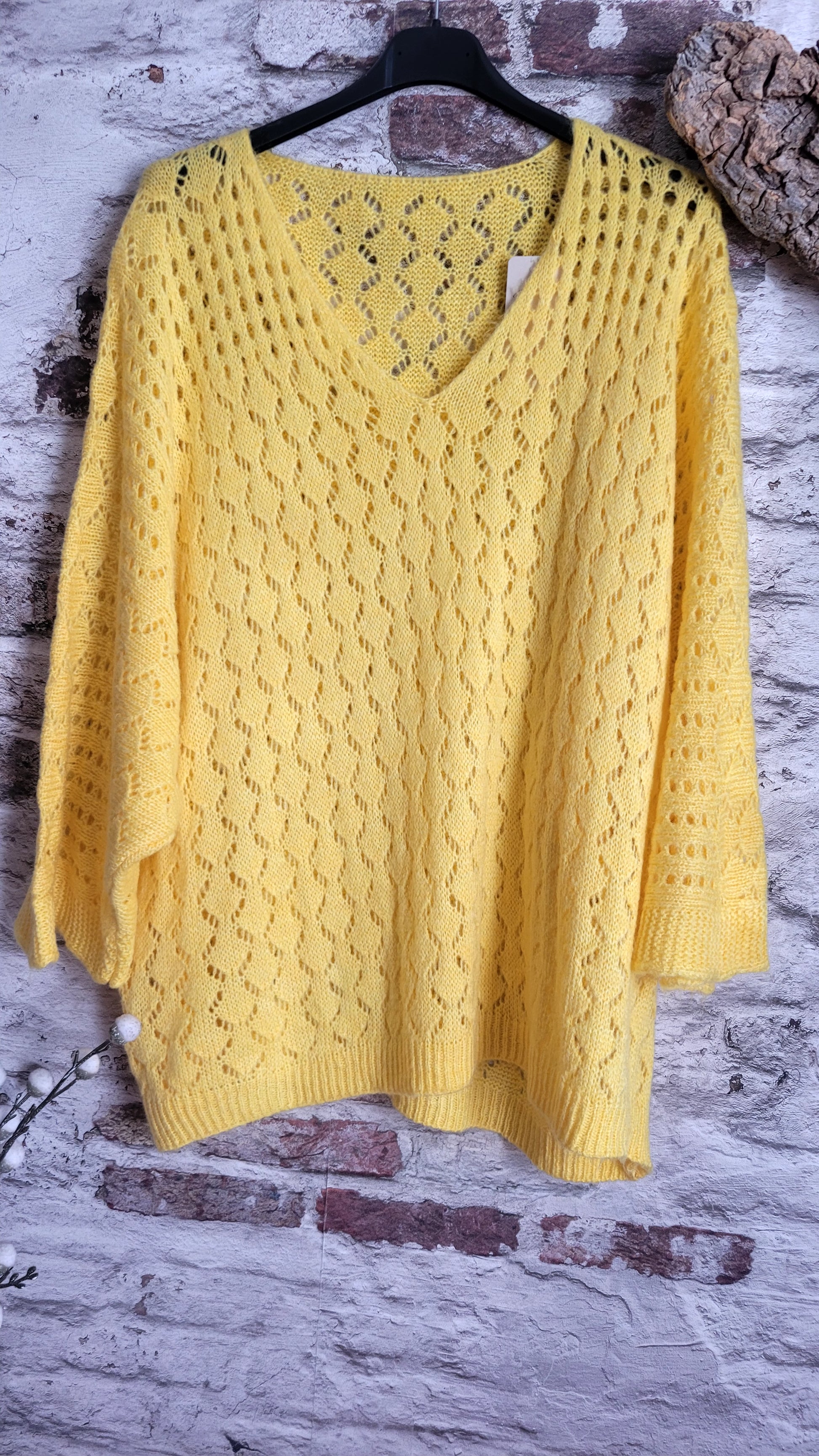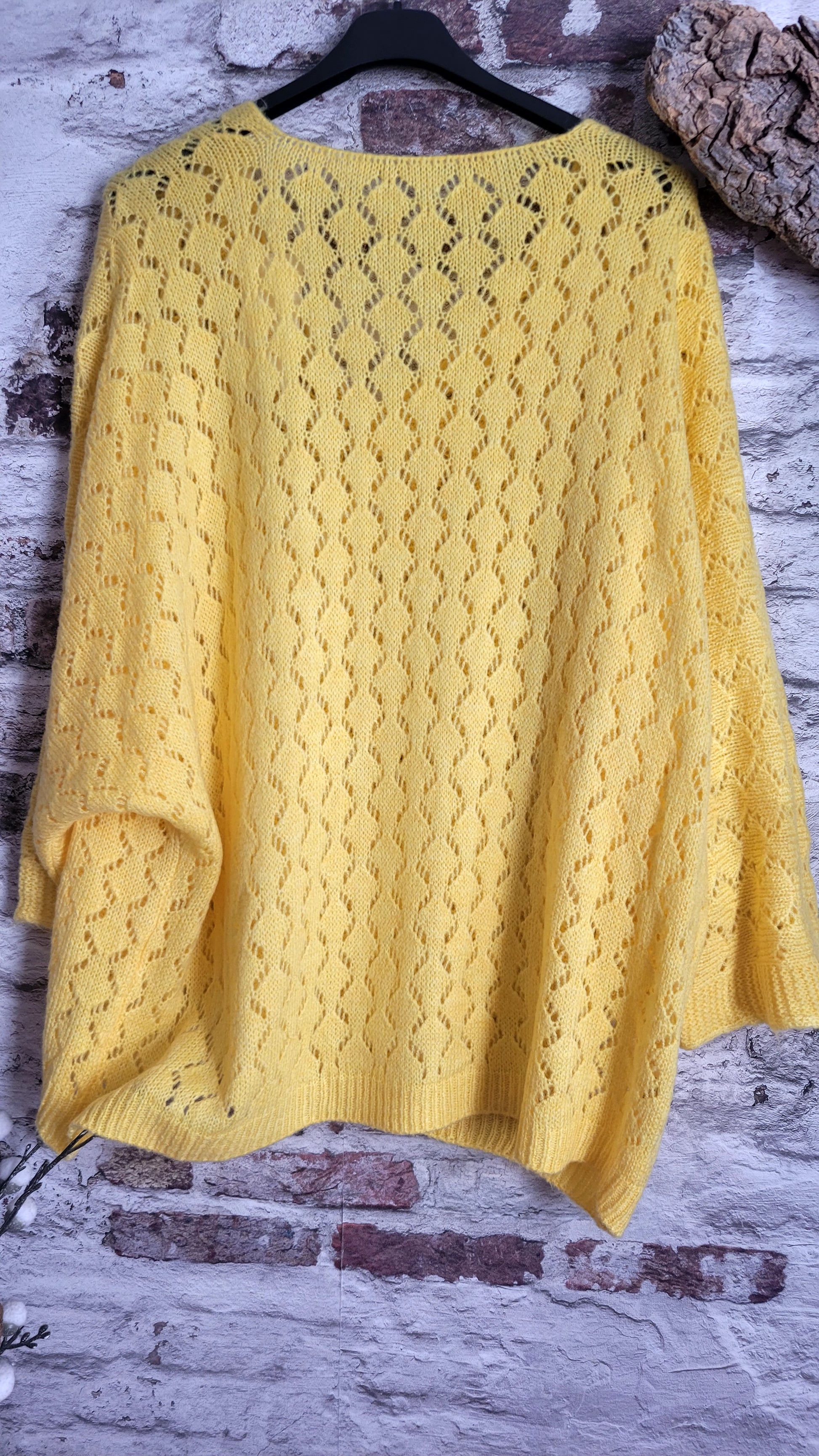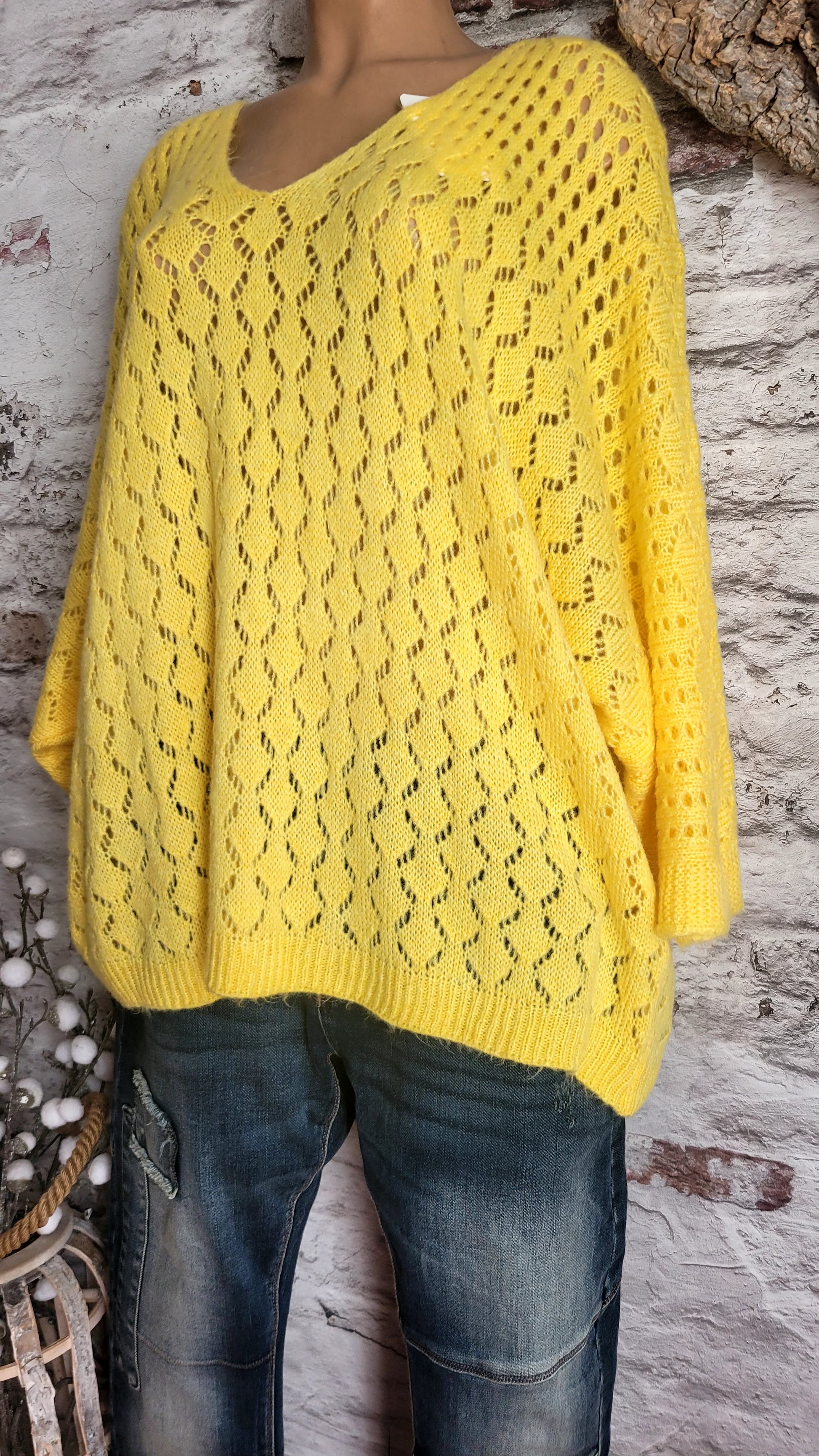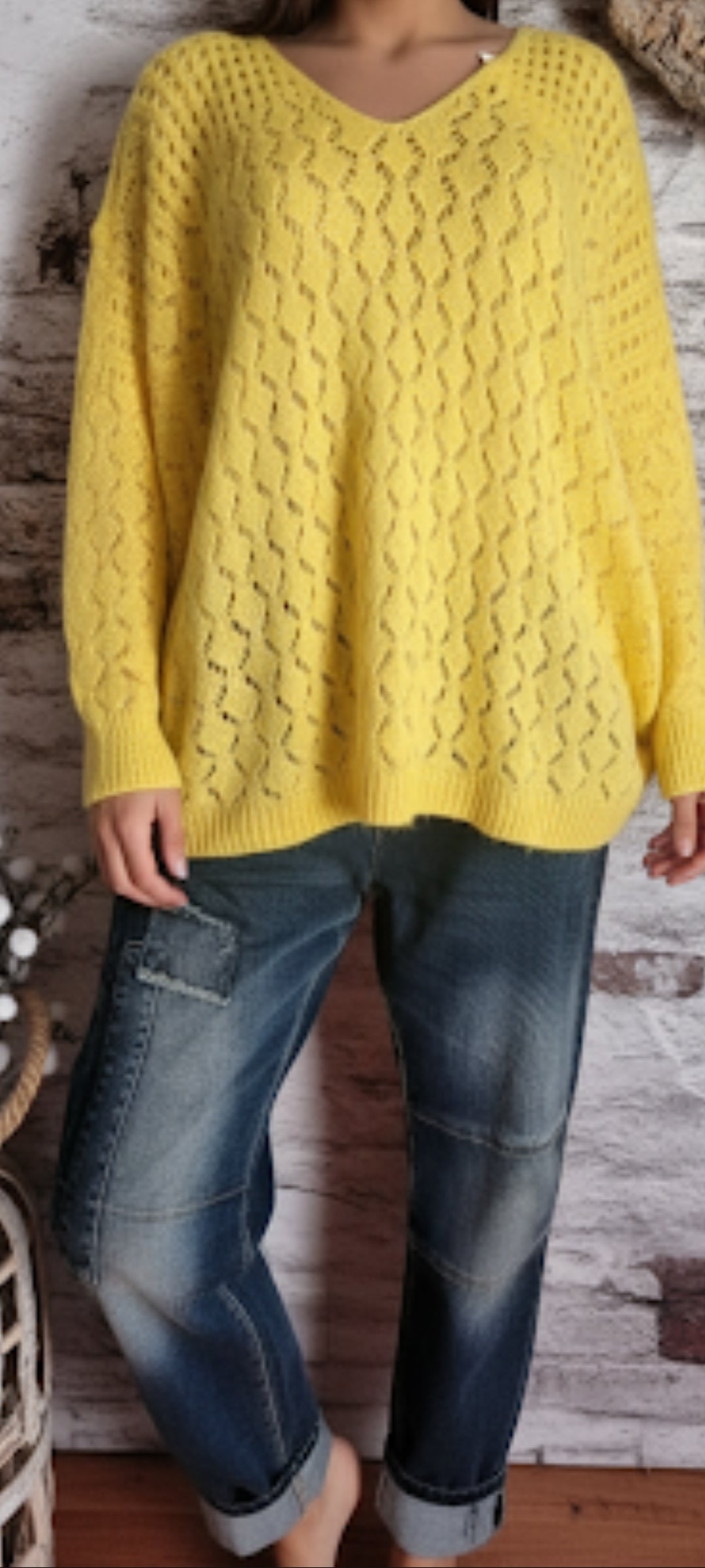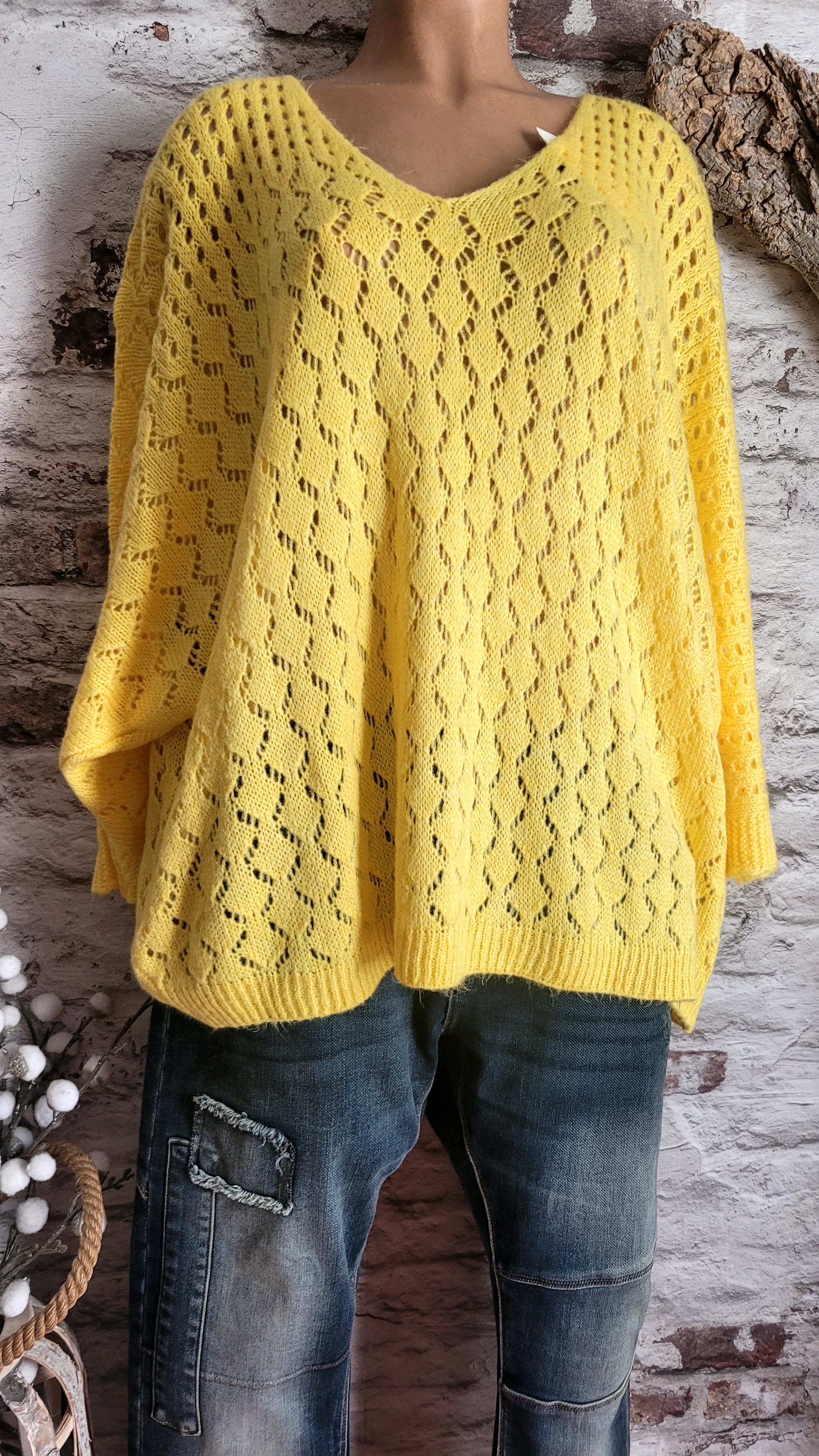 🍒 Pull jaune oversize en maille ajourée : le confort avec style !