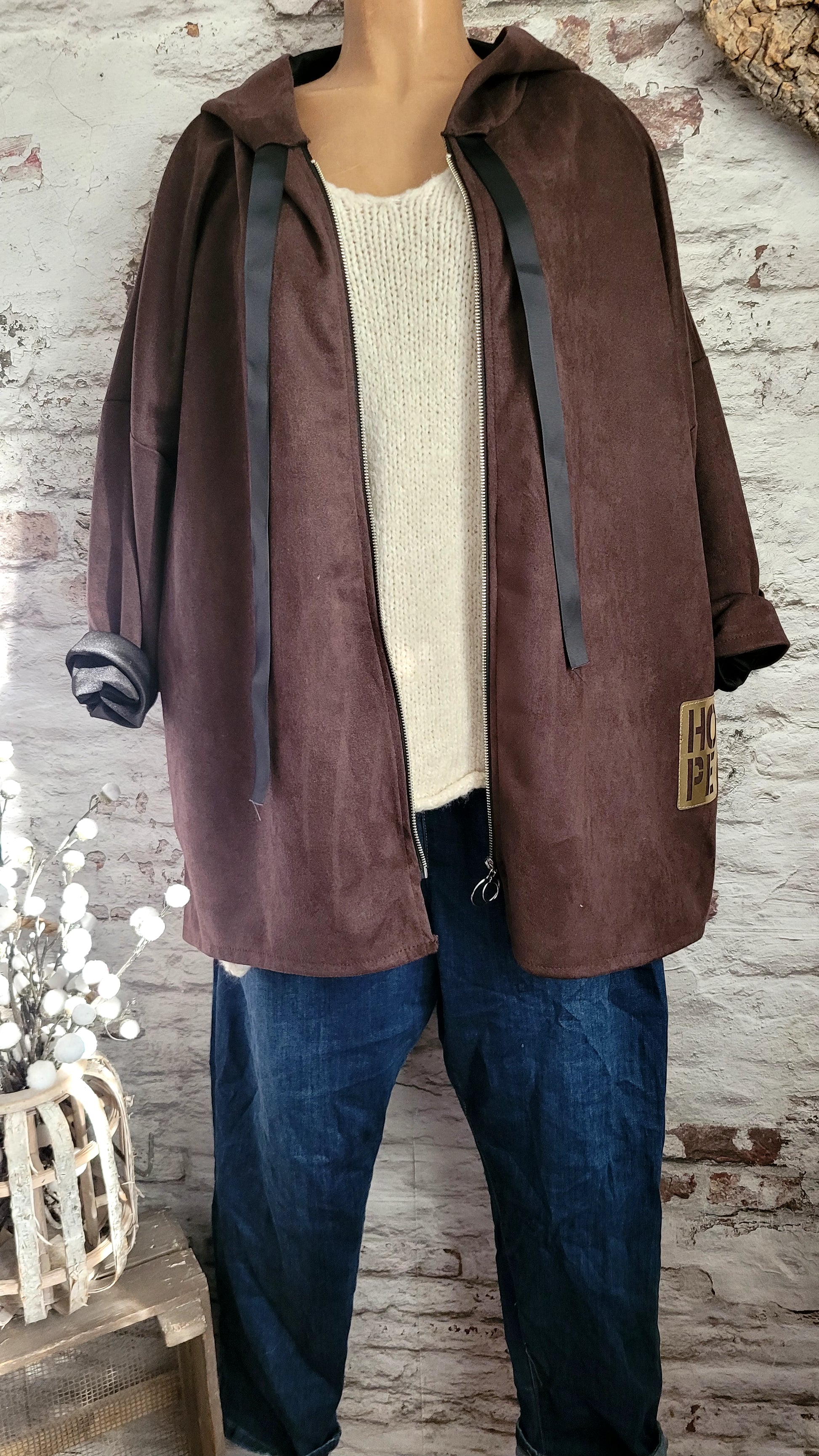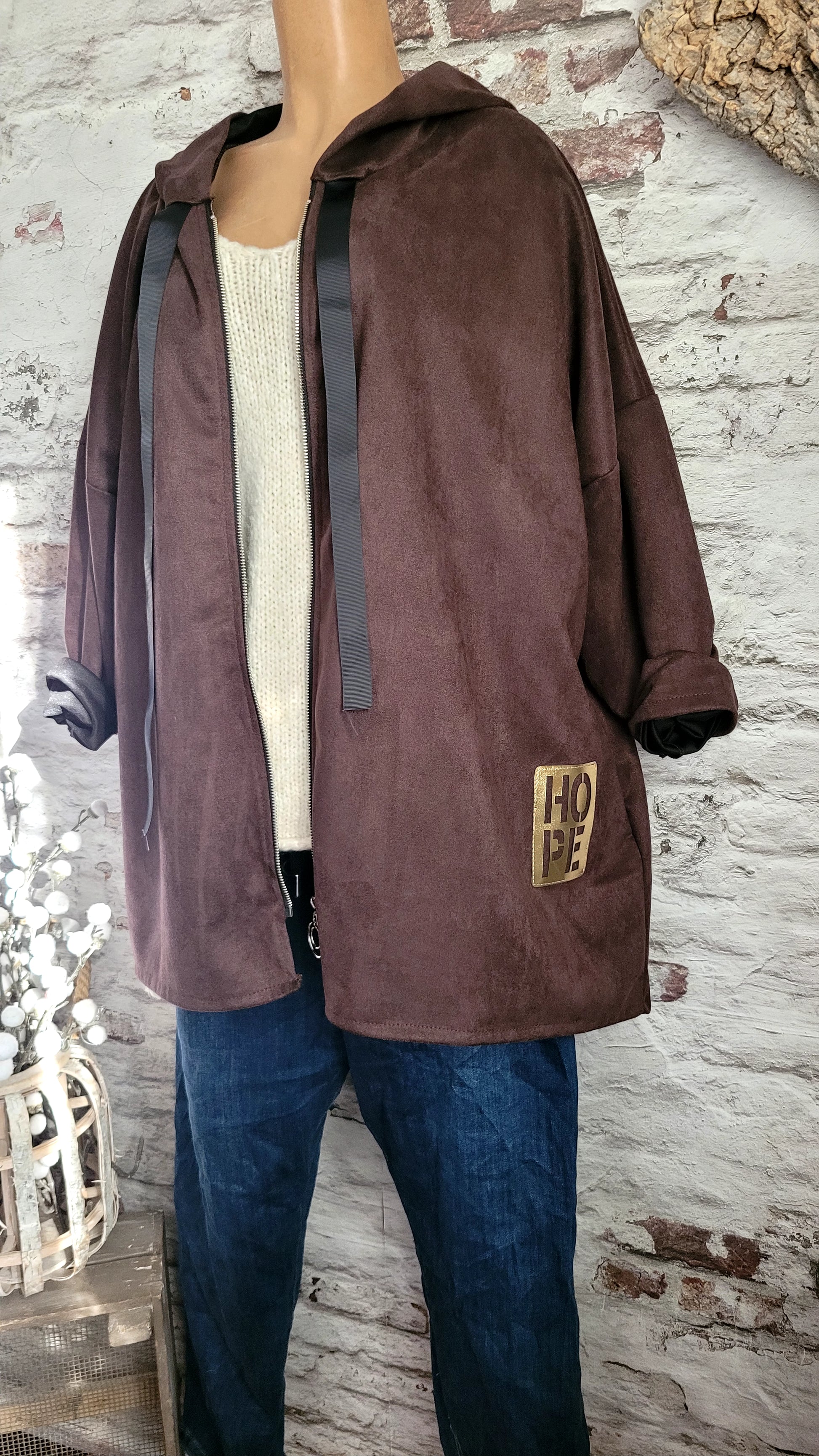 🌺Veste à Capuche en Suédine Douce - Coupe Oversize Asymétrique"