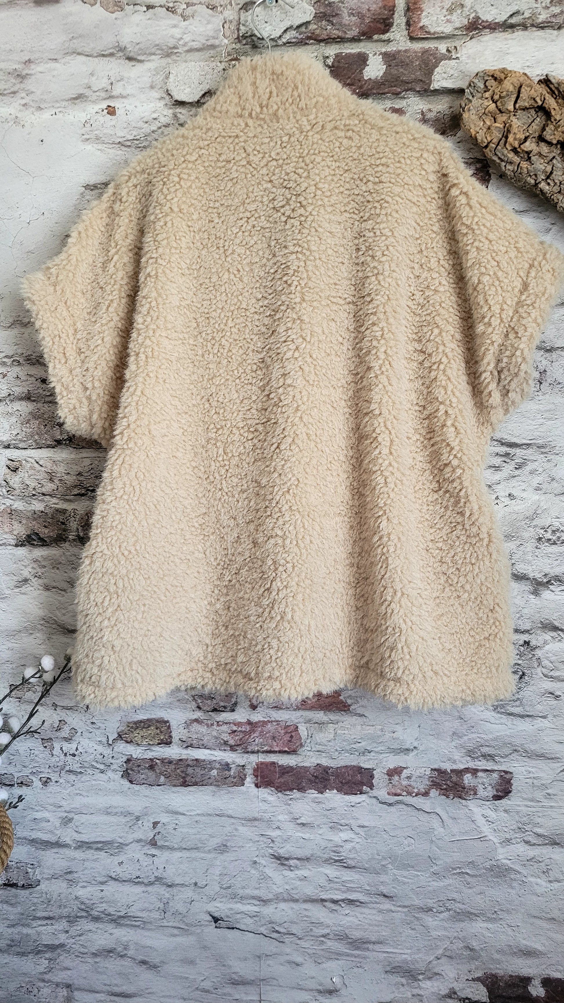 Cette veste courte en fourrure synthétique couleur crème est la pièce parfaite pour un style douillet et tendance. Avec sa fermeture éclair dorée, son col montant et ses deux poches plaquées sur les côtés, c'est l'indispensable chic et confortable pour la mi-saison.