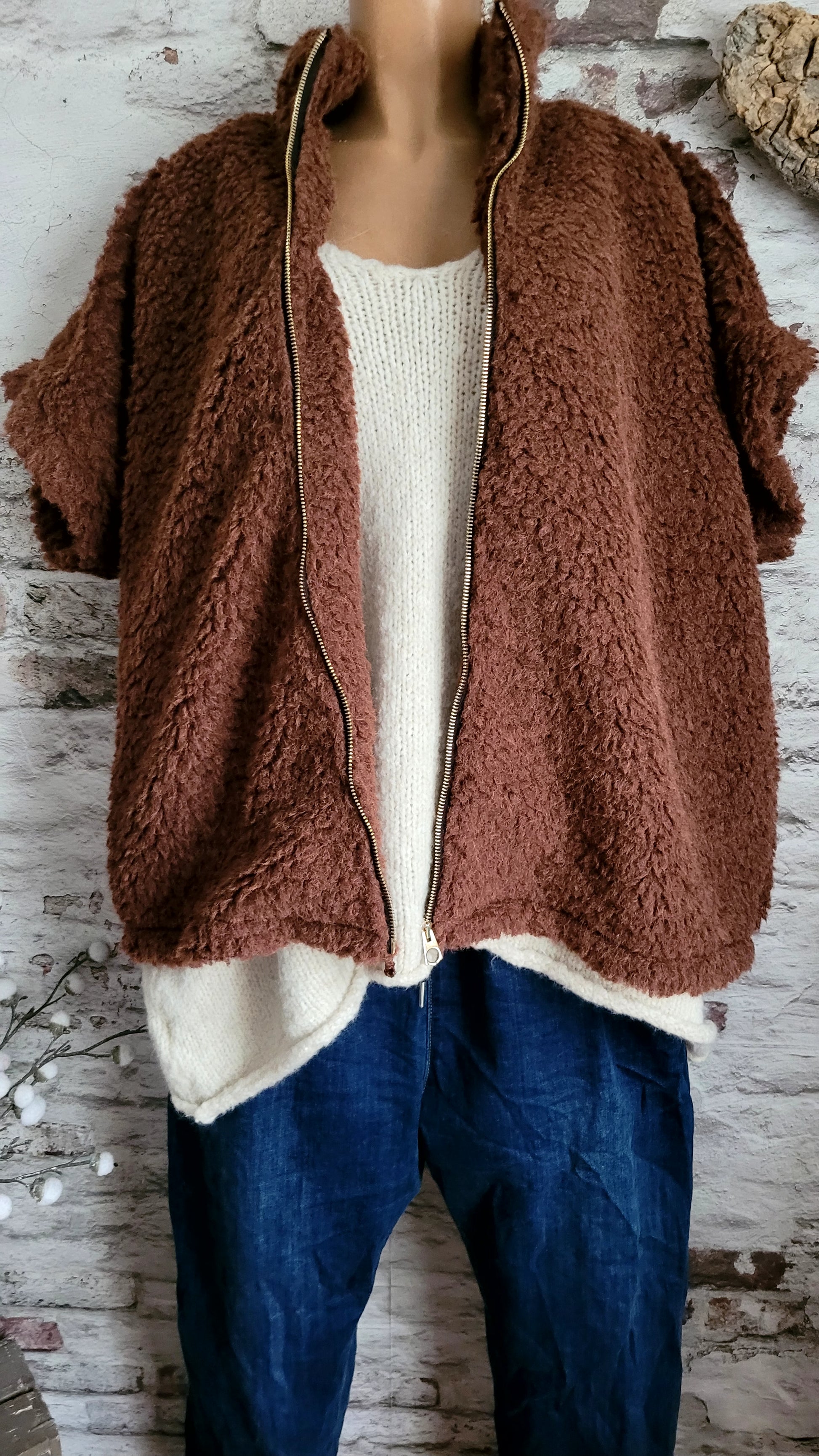 💋 Gilet Court Zippé Teddy - Tendance & Texturé